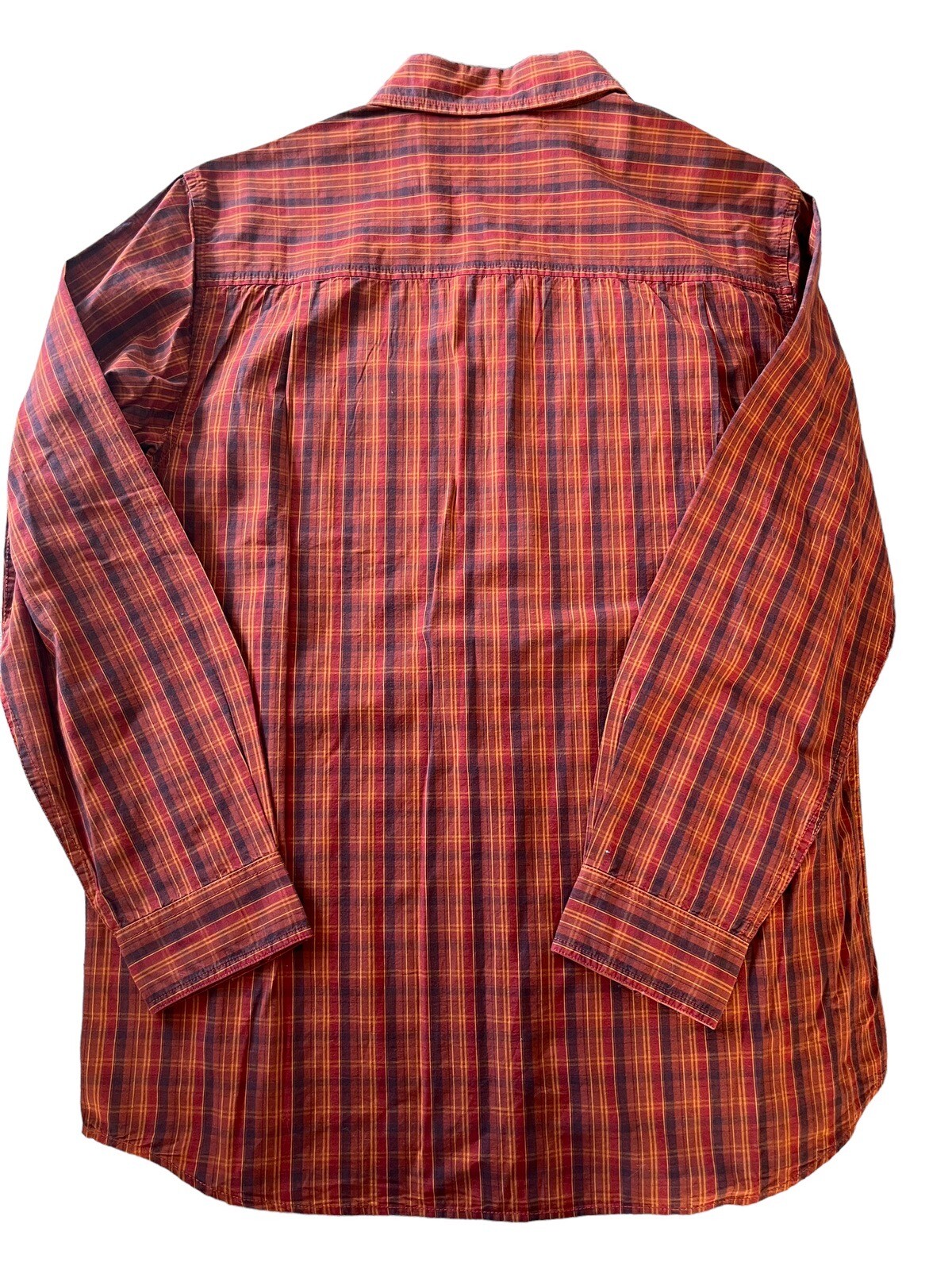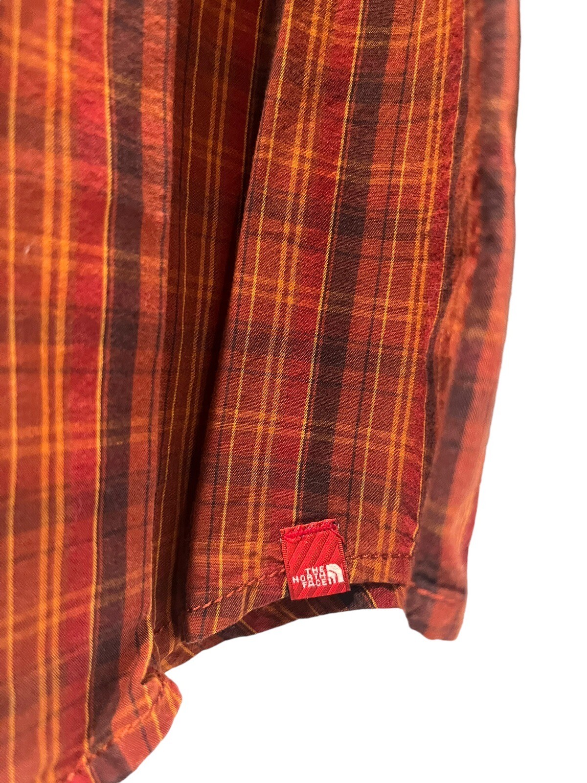 Enhance your wardrobe with this stylish and comfortable button-up shirt from The North Face. Made of a soft cotton blend fabric, this shirt features a classic plaid pattern in shades of brown and orange. It has a collared neckline and long sleeves with buttoned cuffs for a sophisticated look that's perfect for any occasion. The shirt has a regular fit. Chest 46” Length 31” Sleeve length from shoulder seam 25” Size L 100% Cotton