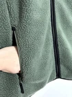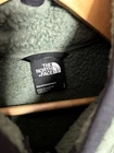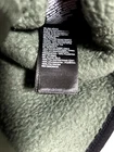 This is a men's full-zip vest by The North Face in size Large. It is made of 100% polyester fleece material with a cozy sherpa lining. The vest is in a solid green color with the brand's logo as an accent. The style is regular fit, featuring a full zip closure. This vest is part of The North Face Campshire product line and is designed for warmth and comfort.
