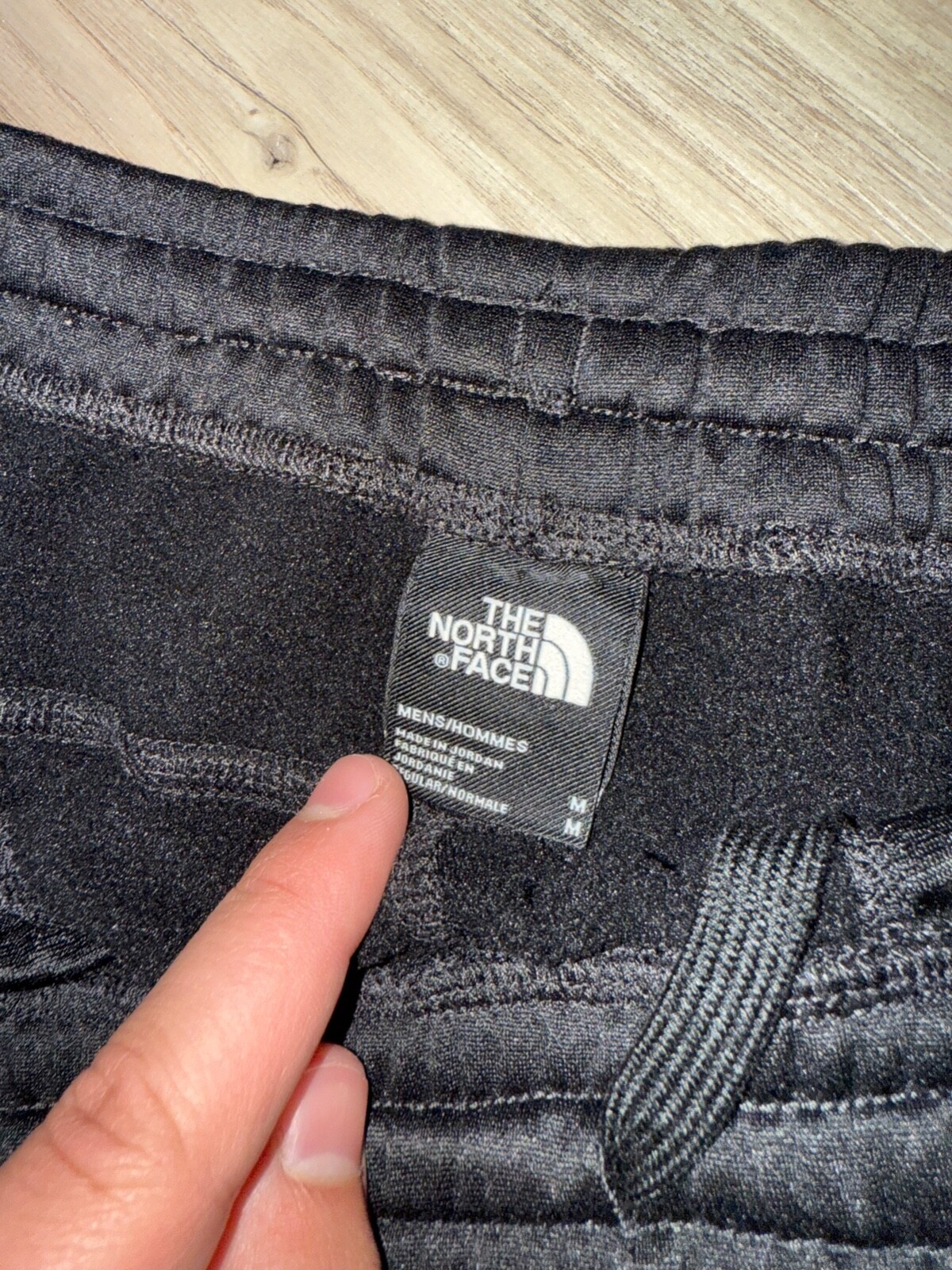 The North Face Canyonlands Jogger Pants in Men's Size M are black sweatpants made from a cozy fleece fabric, perfect for winter, fall, and spring activewear. These tapered-style pants feature an elastic waist with a drawstring closure for a personalized fit, along with pockets for convenience. The North Face branding adds a classic and stylish touch to these comfortable and breathable pants, ideal for running, jogging, hiking, and other outdoor activities. Easy to care for with machine washable instructions, these athletic fit pants are a versatile addition to any man's wardrobe. Used but great condition.