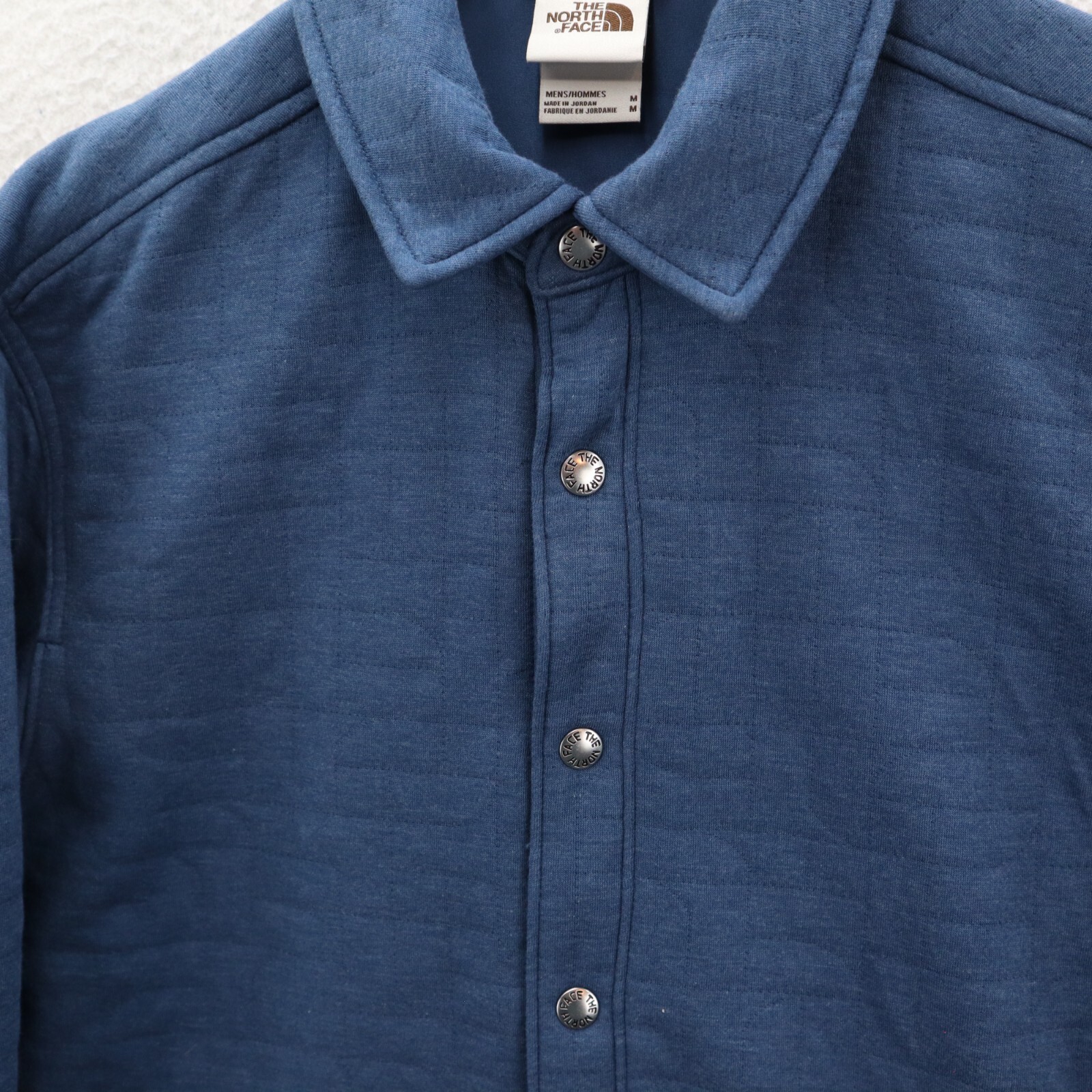 The North Face Jacket Men's M Blue Longs Peak Quilted Shacket Blue Snap Gorpcore This item is in pre-owned condition and therefore may show signs of previous use, such as small stains, holes, or other wear. Please view all of the items photos as any defects will be documented there. Measurements can be seen in the photos.