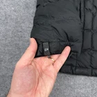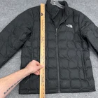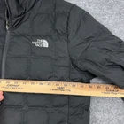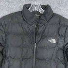The North Face Quilted Puffer Jacket Mens M Black Gray Goose Down 550 Liner In good condition with one small mark as shown. Please see photos for measurements. It does have a reversible zipper and the sleeve snaps so you could use it as a liner with a North Face shell as well.