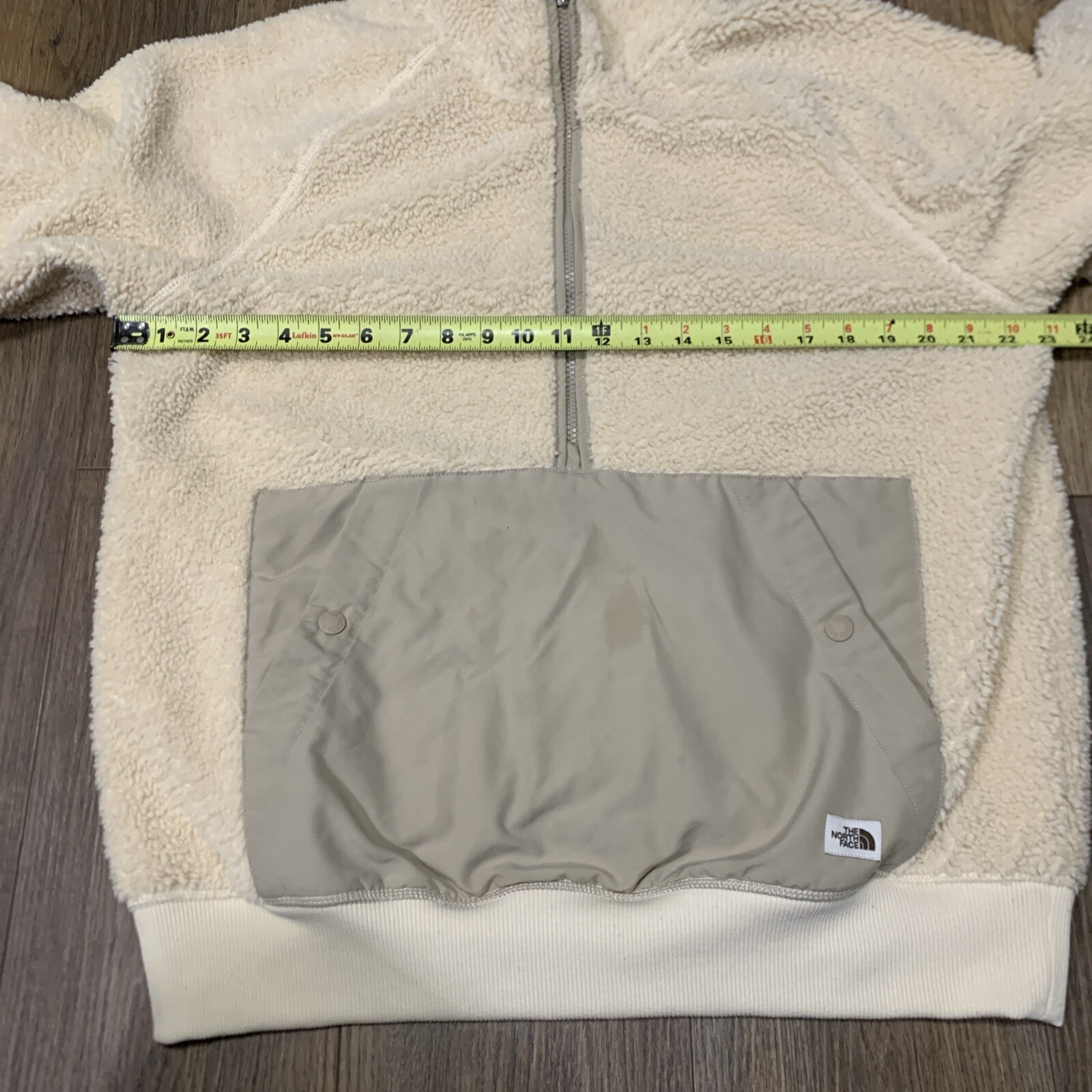 Embrace the elements with The North Face Men's Ridge Fleece Pullover, a versatile addition to your outdoor apparel collection. Fashioned in a classic beige, this mid-length windbreaker is ideal for layering during the cooler months of fall, spring, and winter. Its polyester outer shell and lining offer durability and comfort, while the soft fleece fabric ensures you stay cozy without the bulk. This pullover features a convenient 1/4 zip closure for easy temperature regulation and a stand-up collar to shield your neck from the wind. The design includes contrasting pocket pouches for functionality and a subtle logo accent for style. Whether you're headed to the office or out for a casual outing, this jacket's classic fit and machine-washable care make it a practical choice for any occasion.