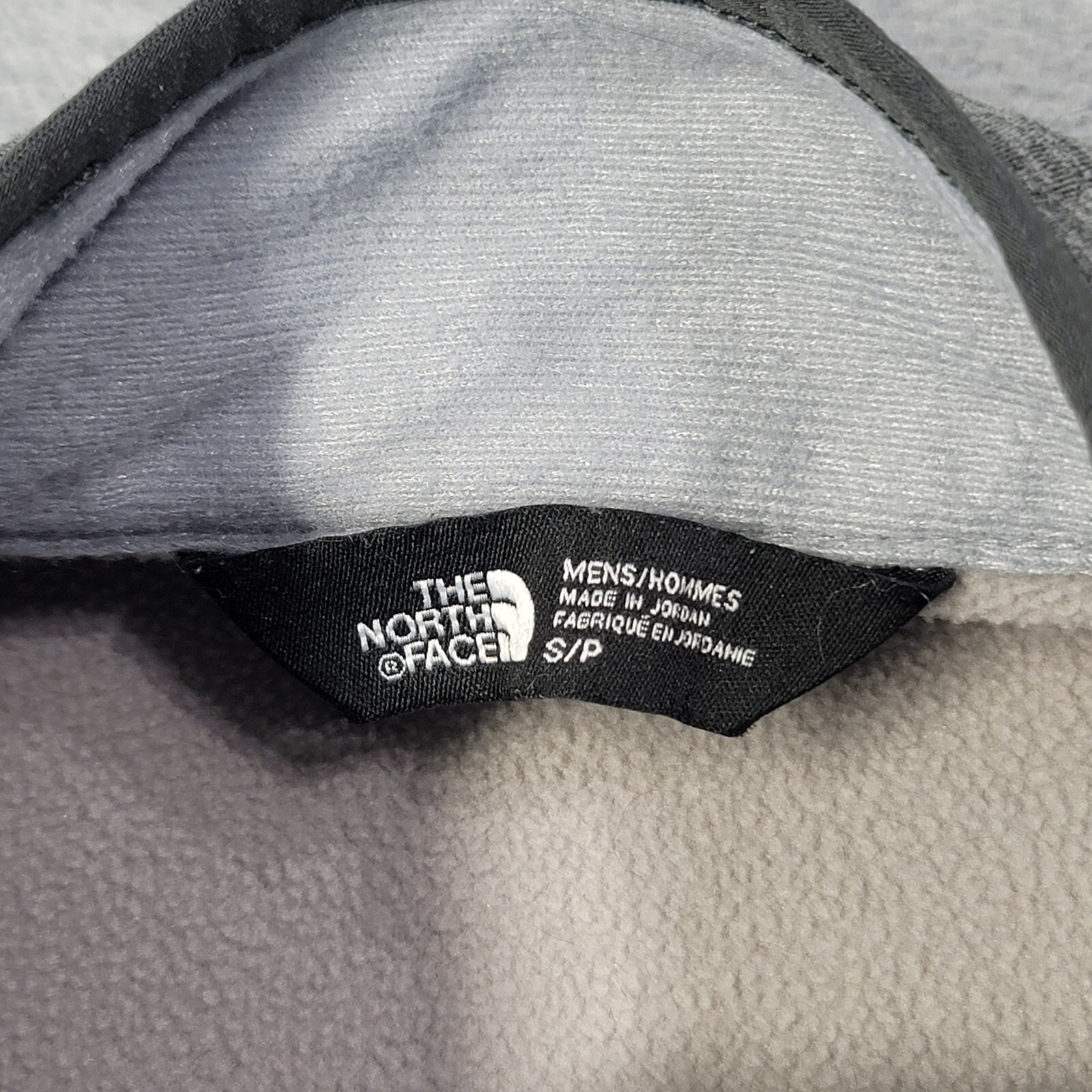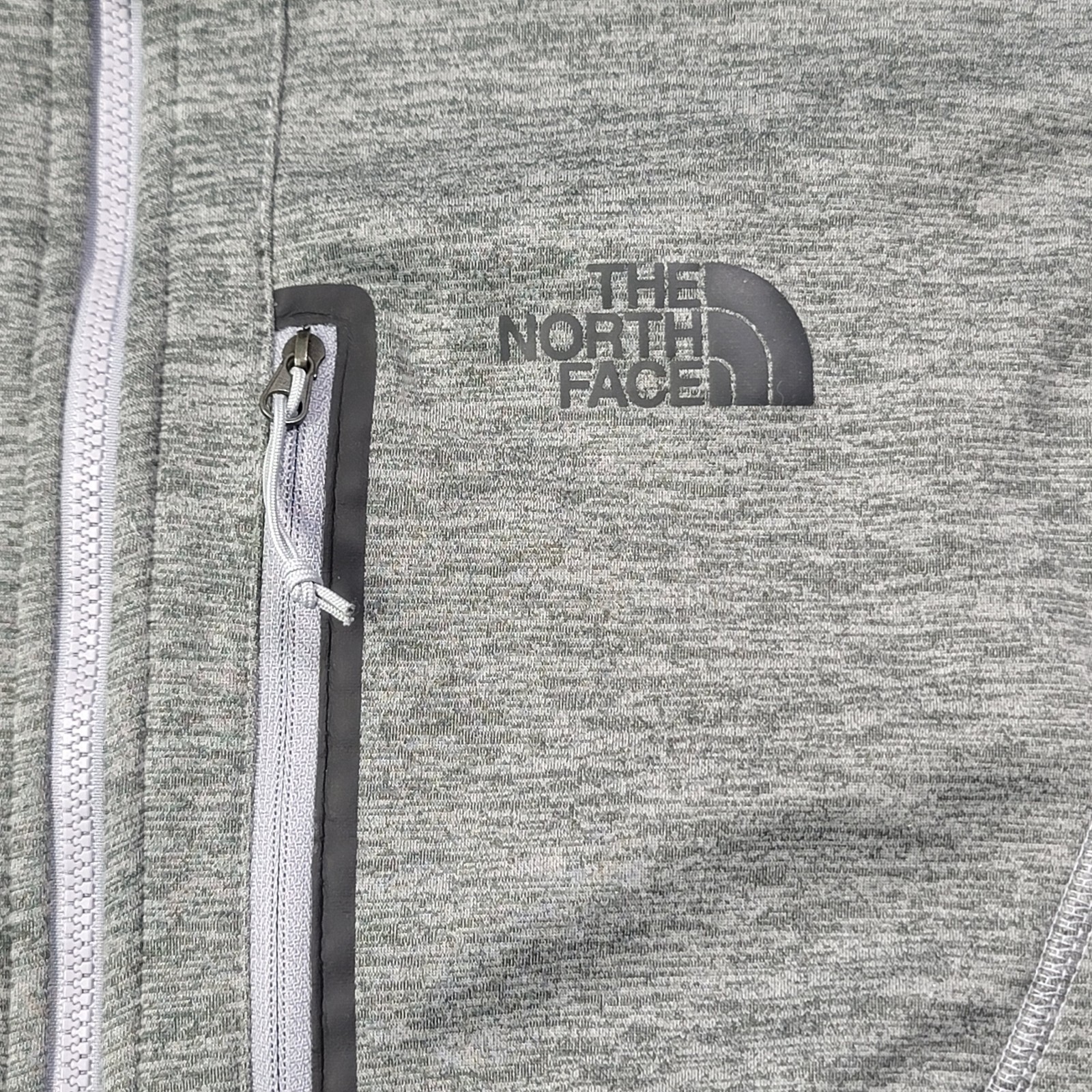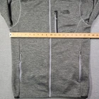 This is a men's bomber jacket by The North Face in size small and gray color. The jacket features a full zip closure, a mock neck with a stand-up collar, and a chest pocket. Made of polyester with a spandex lining, the jacket is designed for casual wear and is ideal for activities like walking, hiking, and running. The fleece fabric type provides warmth and comfort, while the stretch feature allows for ease of movement.