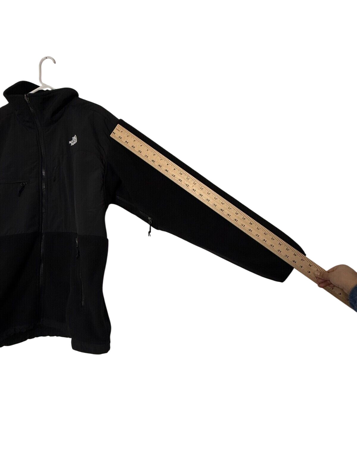 The North Face Denali Jacket is a black, mid-length fleece jacket with a full zip closure. Made of polyester fleece with a polyester lining, it features zipped pockets, a logo accent, and a regular fit. Suitable for travel, casual, or workwear, this jacket is designed for outdoor activities like walking, skiing, and hiking in all seasons. The classic retro style embodies a hipster and USA theme.