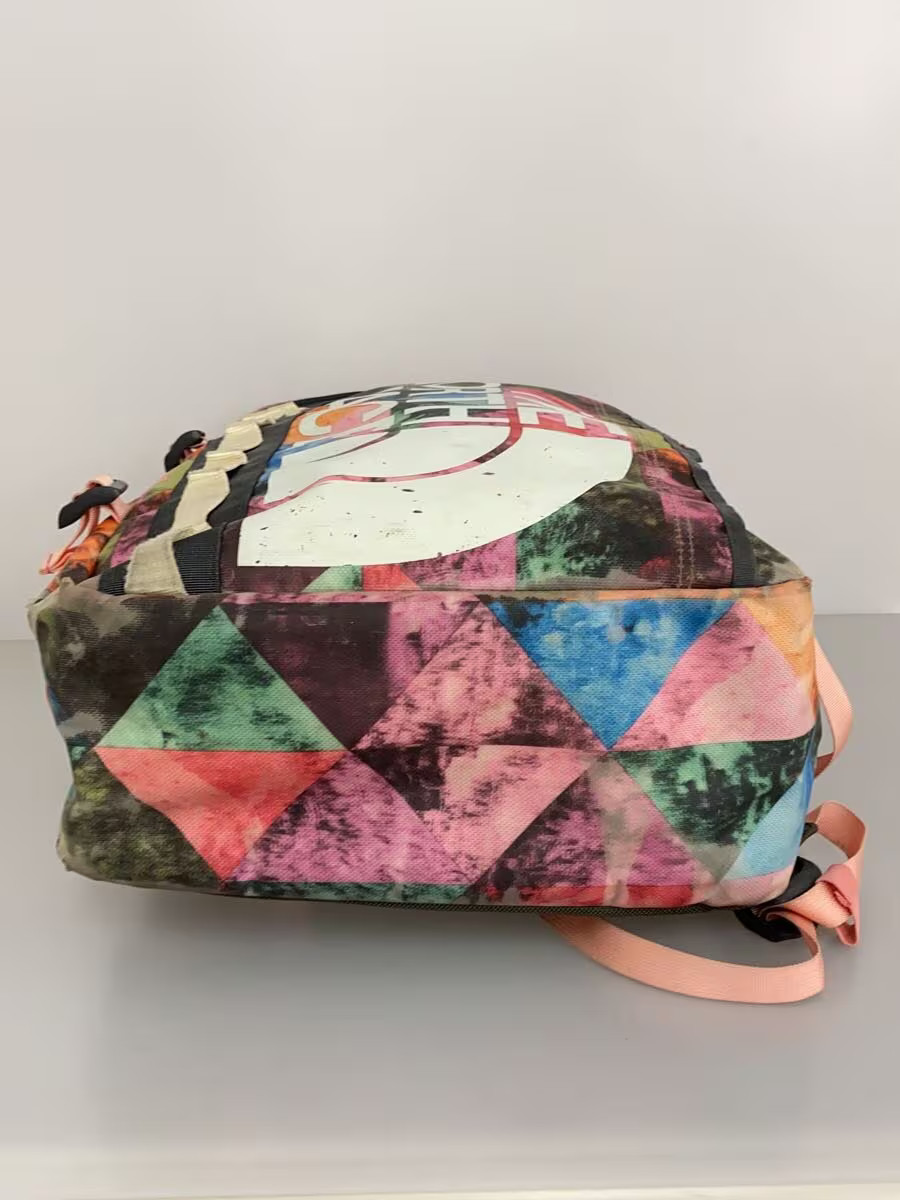 This backpack is a great find! The multicolor all-over pattern gives it a unique, stylish look. Despite some minor scratches and peeling, it's still very functional with plenty of space—perfect for daily use or travel. The size is ideal, and the material feels durable. Love the vintage vibe from the wear, making it stand out even more. A solid choice for anyone wanting a reliable and eye-catching backpack!
