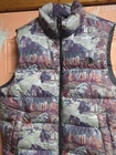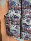 Pit to pit 22 1/2 Length 28 Elevate your winter wardrobe with this stylish and warm North Face vest. The unique all-over print features a beautiful forest scene with bears, deer, and a river, giving off a retro and outdoorsy vibe. The vest is made of durable polyester and features a goose down insulation, making it perfect for cold weather activities. This medium-sized vest is perfect for men who want to stay warm without sacrificing style. The colorful multicolor design is sure to turn heads, while the vest's puffer jacket style provides both comfort and functionality. Whether you're hitting the slopes or just running errands, this North Face vest is a must-have for any winter outfit.