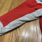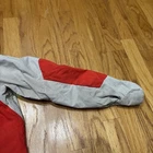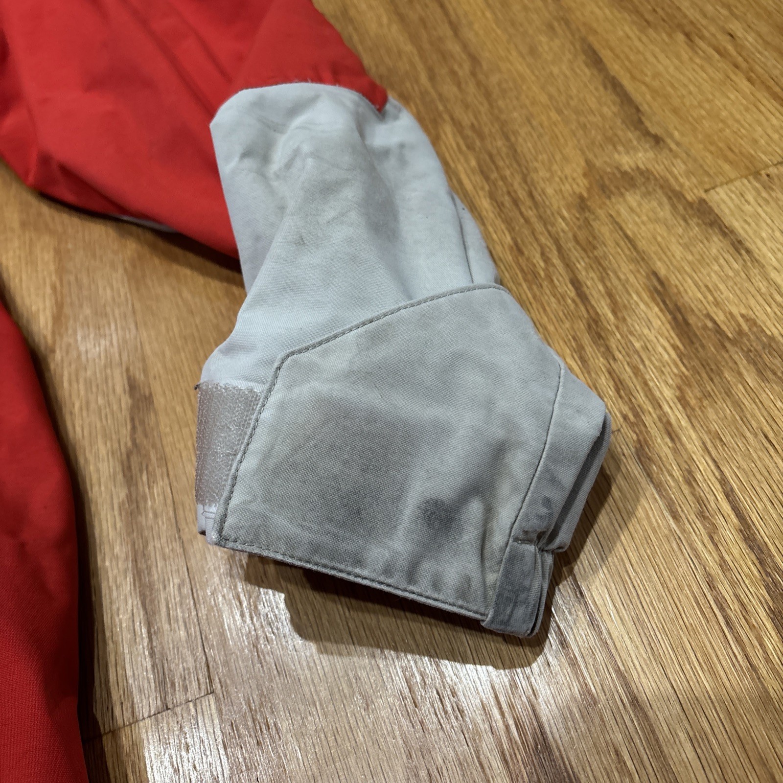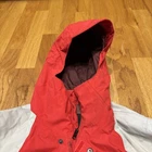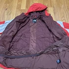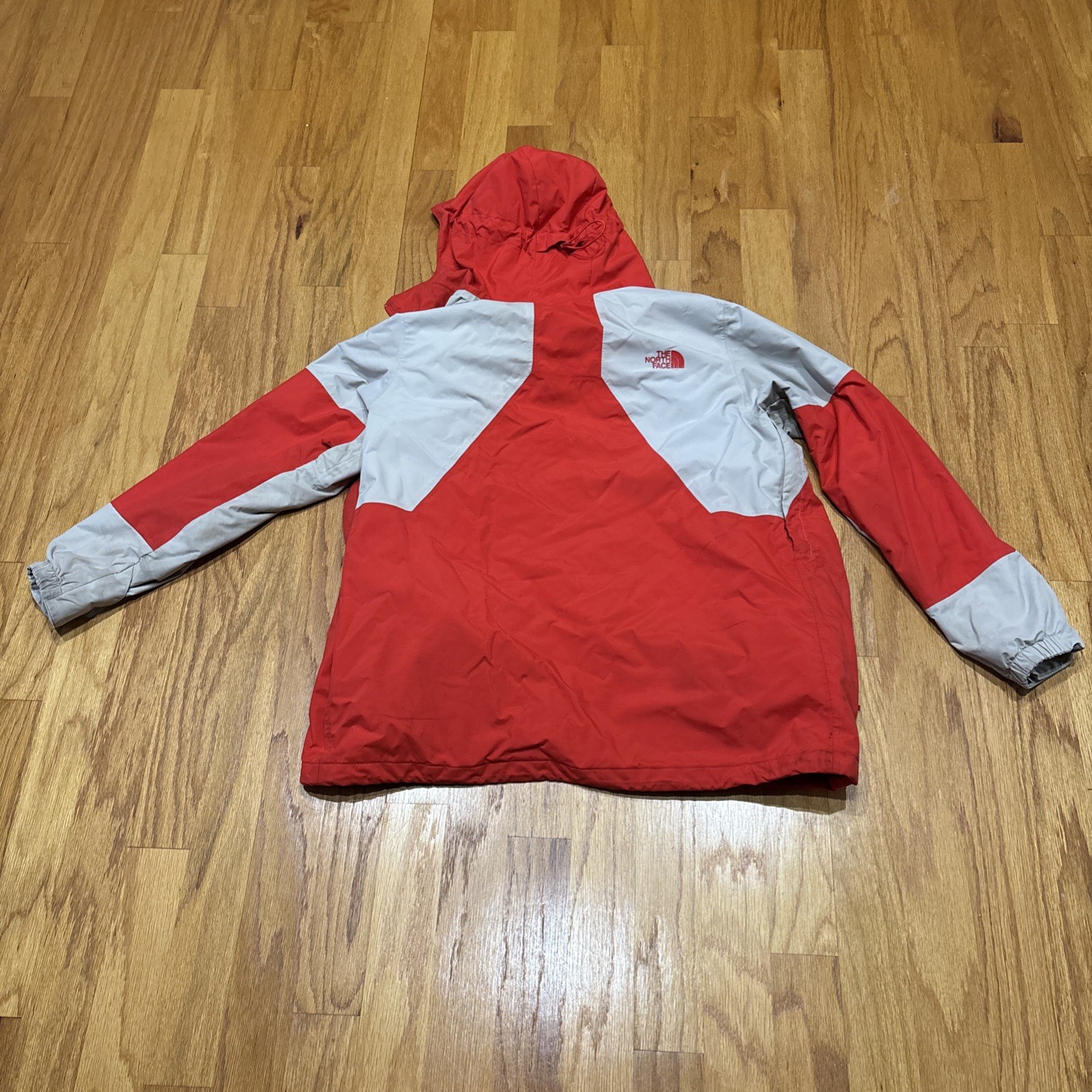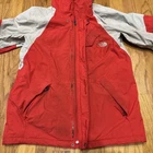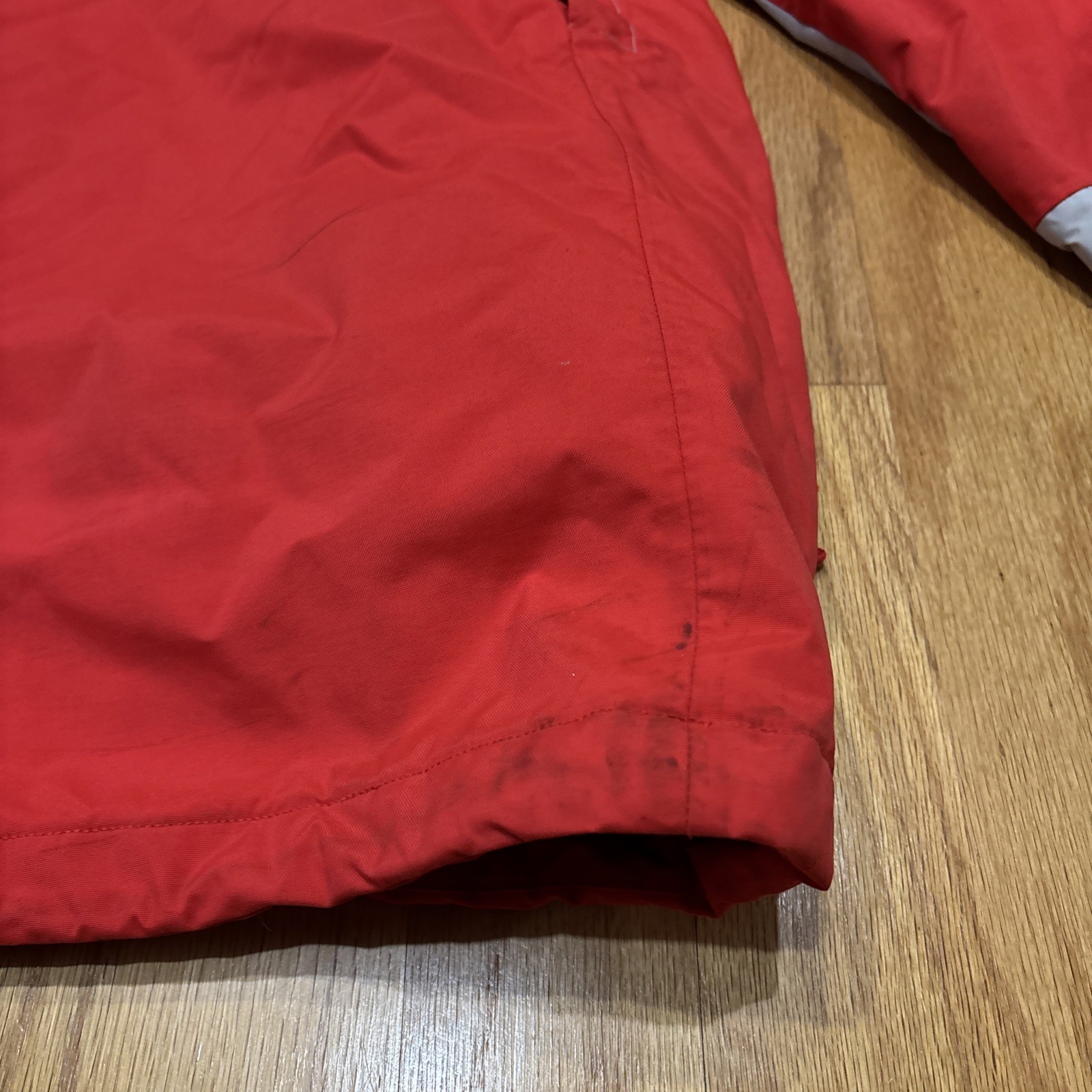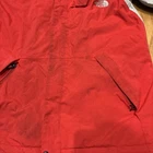 This North Face rain jacket is a versatile addition to any wardrobe. With its solid red color and subtle logo accent, it can be worn for casual occasions, while hiking, or even for travel. The jacket is made of lightweight and durable nylon material, which makes it easy to carry around. It features a full zip closure, a hood, and a mid-length coat length, making it suitable for winter, fall, and spring seasons. The jacket is also equipped with polyester insulation, which provides an extra layer of warmth. It is important to note that this jacket is not suitable for dry cleaning only. The North Face rain jacket is a perfect outdoor theme gift for your loved ones. This jacket is clearly worn and has several marks throughout. Please refer to all photos and ask any additional questions. It has been washed thoroughly however some of the stains may come out if taken to a professional dry cleaner.