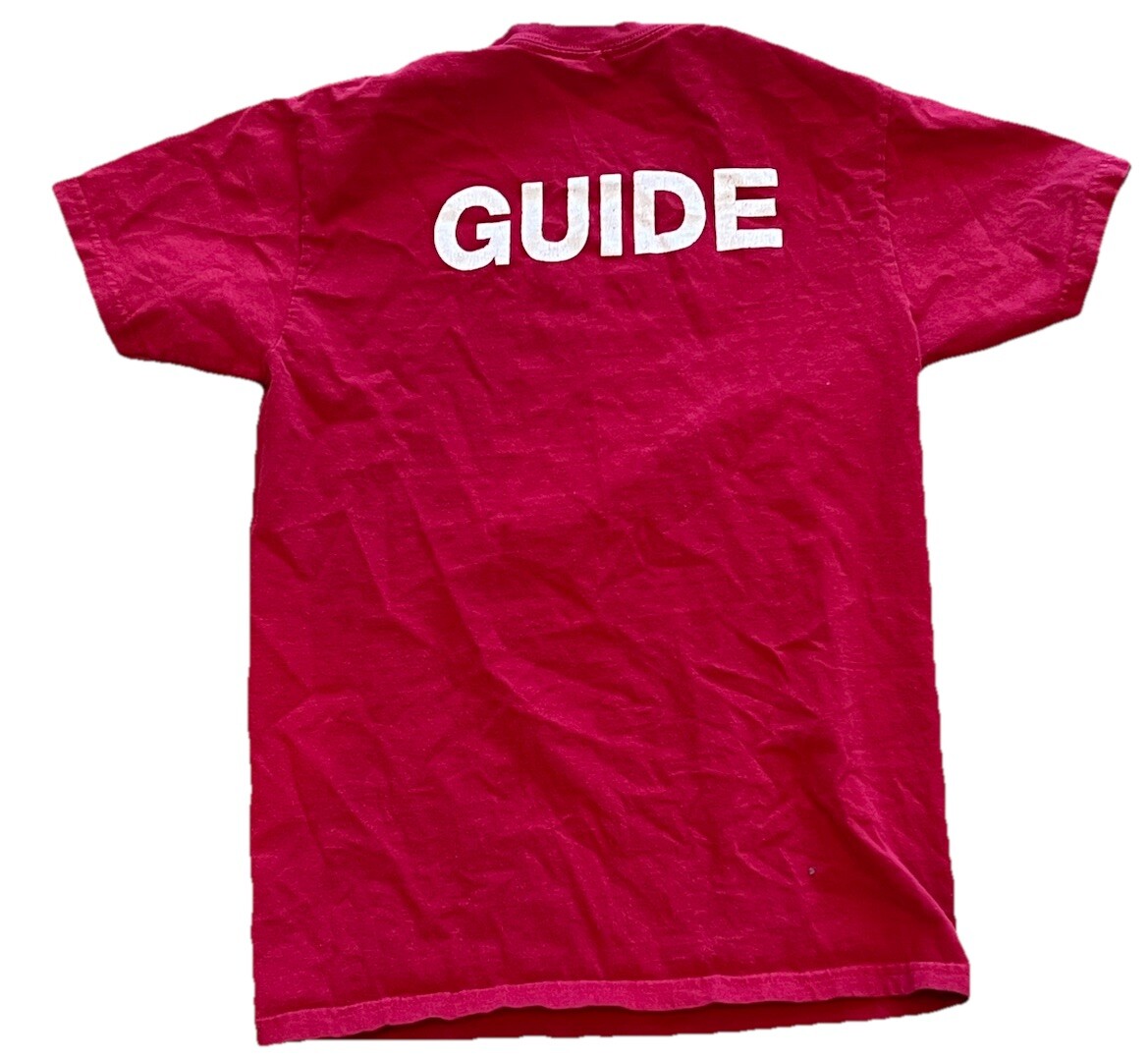 The North Face Red Guide Tee Shirt is a men's small short sleeve t-shirt made from a comfortable cotton blend material with a solid red color. Featuring the iconic logo of The North Face, this outdoor-themed shirt is perfect for all seasons and is designed for easy care with machine washable instructions. With a crew neck and regular fit, this tee is ideal for outdoor activities in the summer, fall, or spring, making it a classic and breathable addition to any man's wardrobe.