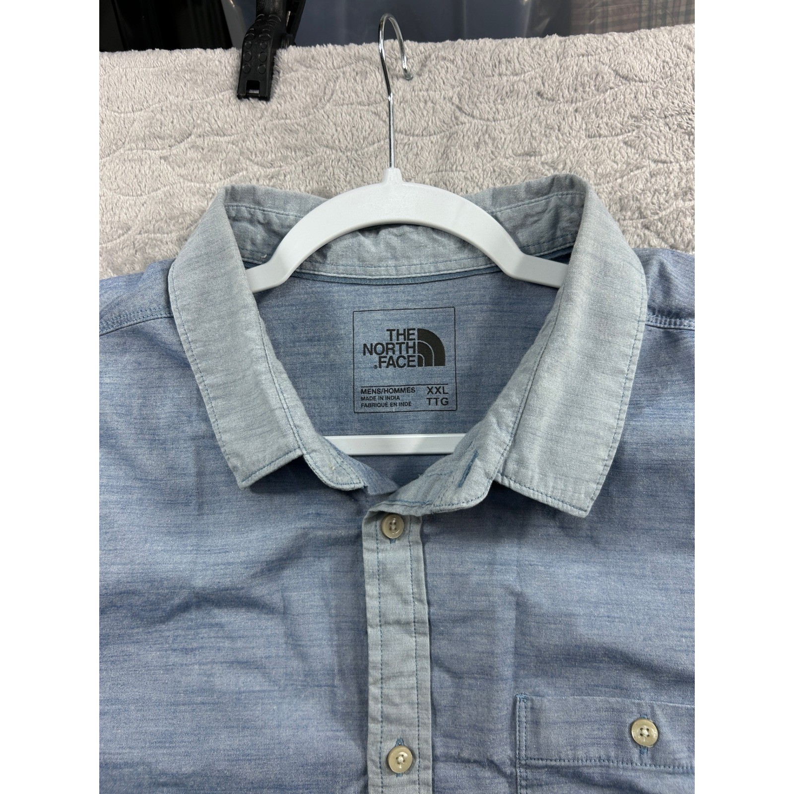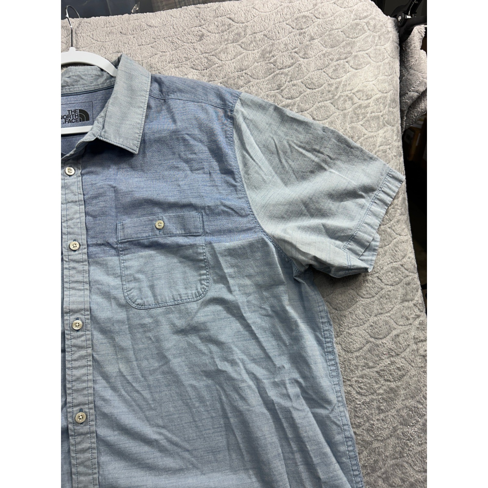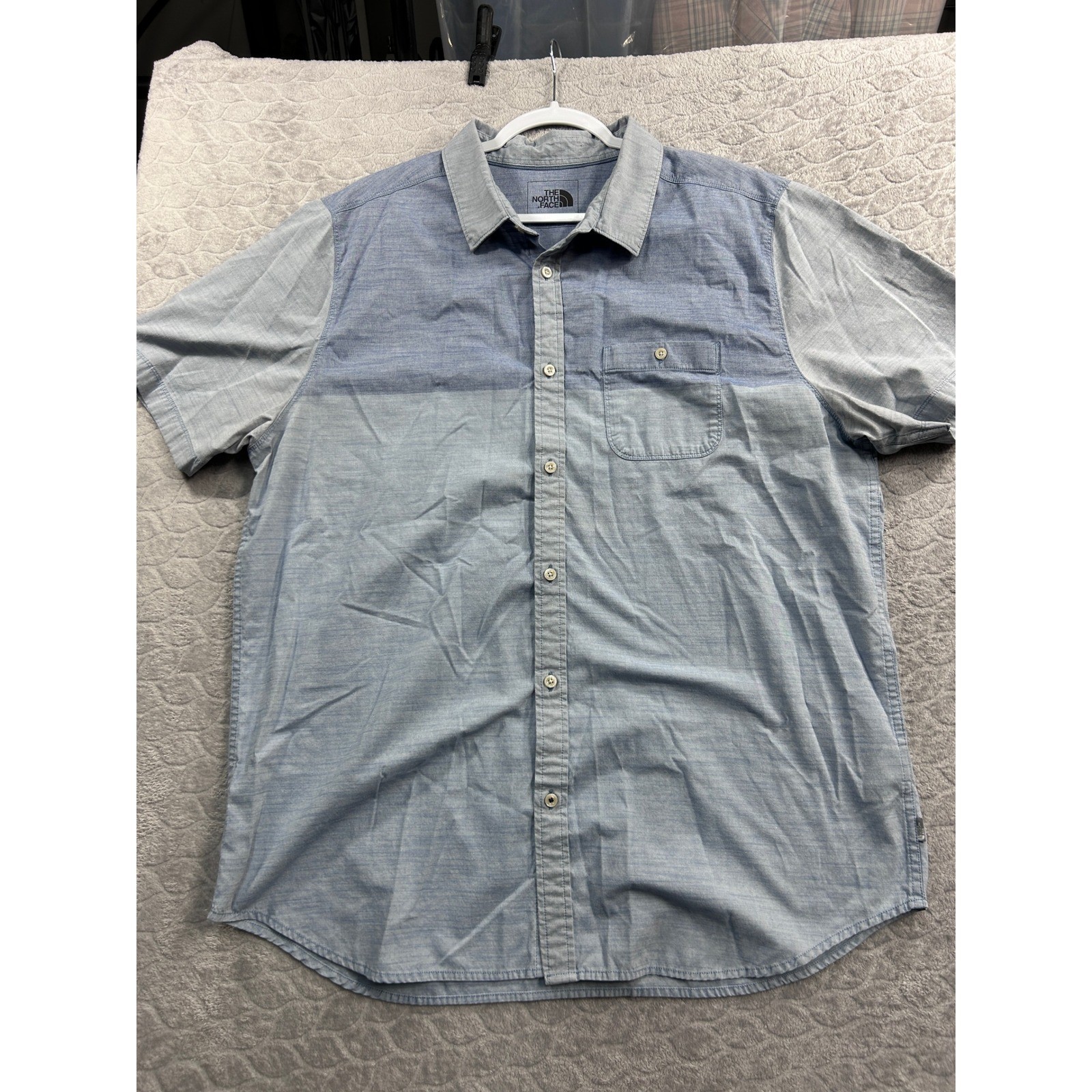 Discover effortless style with this The North Face short sleeve button-up shirt. Crafted for comfort and versatility, this shirt features a distinctive color block design with shades of blue that create a modern, dynamic look. The chest pocket adds a touch of classic utility, while the clean lines ensure a polished appearance. Perfect for a casual day out, a relaxed weekend gathering, or adding a touch of laid-back sophistication to your everyday wardrobe. Sleeve Length: Short Sleeve Department: Men Fabric Type: Chambray Closure: Button Accents: Button Pattern: Colorblock Fit: Regular Features: Pockets Collar Style: Button-Down Type: Button-Up Neckline: Collared Occasion: Casual Season: Summer, Spring Unit Type: Unit Keywords: North Face, button down, color block, short sleeve, menswear, casual wear, outdoor, travel, everyday, comfortable, stylish, versatile