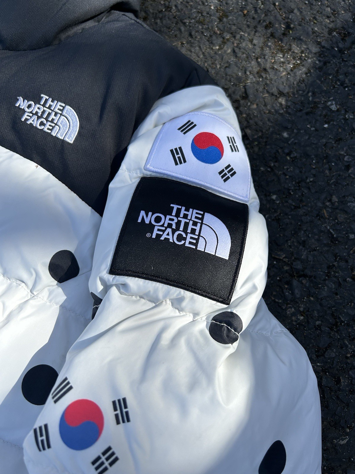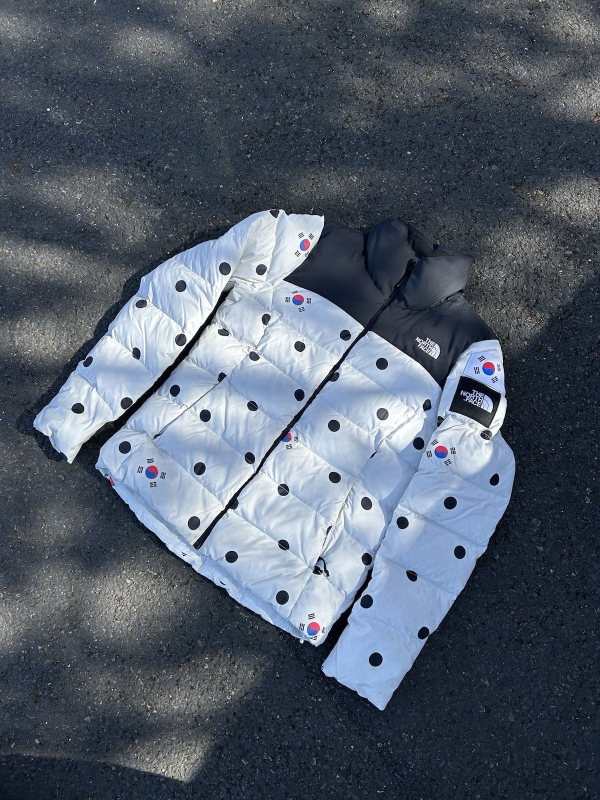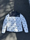 Stay warm and stylish with this white The North Face puffer jacket. Perfect for travel and casual occasions, this jacket features a nylon outer shell and is filled with down insulation. The jacket is a women's size small and has a regular fit. It also has a zip closure and The North Face logo accents. This jacket is machine washable and in excellent condition. It is a great addition to any winter wardrobe and will keep you cozy in colder weather.