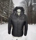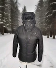 THE NORTH FACE SUMMIT SERIES WINTER PUFFER JACKET 800 DOWN FILL POWER THIS IS A PRETTY HEAVY DUTY DOWN COAT - SURE TO KEEP YOU NICE AND WARM IN THE WINTER MONTHS! FIXED HOOD FULL ZIP AND ZIPPERED HAND POCKETS BLACK IN COLOR WOMENS SIZE SMALL - 20" ACROSS EXTERIOR CHEST LAID FLAT / 27.5" SLIGHTLY LONG LENGTH FROM TOP OF SHOULDER TO HEM PRE OWNED - SELLING FOR LESS BECAUSE THE LOGOS ARE WEARING OFF AND THERE IS ONE SMALL 1" REPAIR ON THE RIGHT WRIST SLEEVE - PLEASE SEE PICS