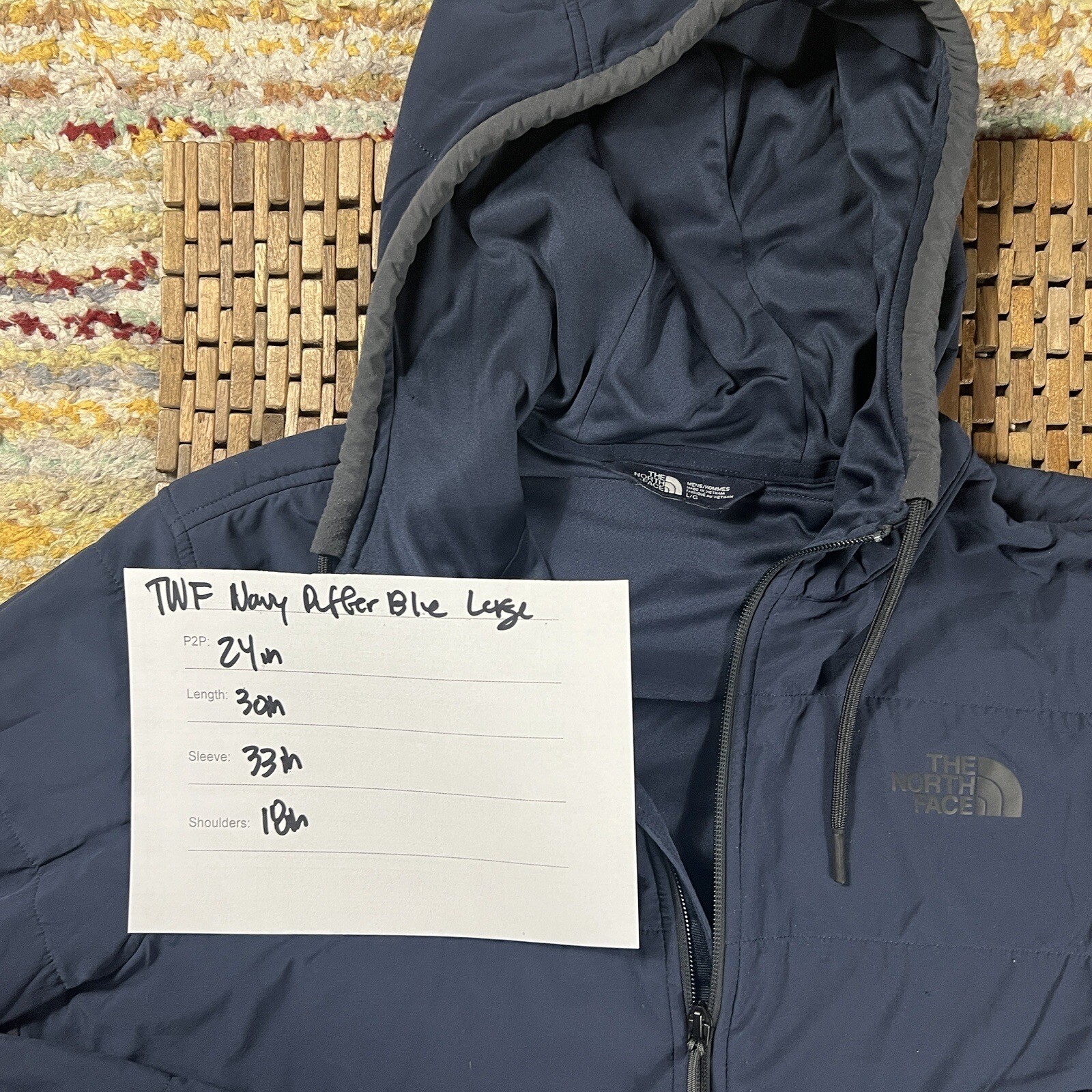 Embrace the winter season with this stylish and cozy puffer jacket from The North Face. Made with softshell fabric and insulated with recycled polyester, this jacket will keep you warm and comfortable during your outdoor activities such as hiking, skiing, and walking. The full zip closure and quilted design accented with embroidery and logo make it a perfect fit for any occasion such as travel, workwear, or casual wear in the city. This American-themed jacket comes in a solid gray color with a blue hoodie and is a size L. Its durable polyester outer shell and polyester lining material ensure that it will last you for many winters to come. Get your hands on this jacket from The North Face Thermoball product line today and enjoy the cozy warmth it brings.