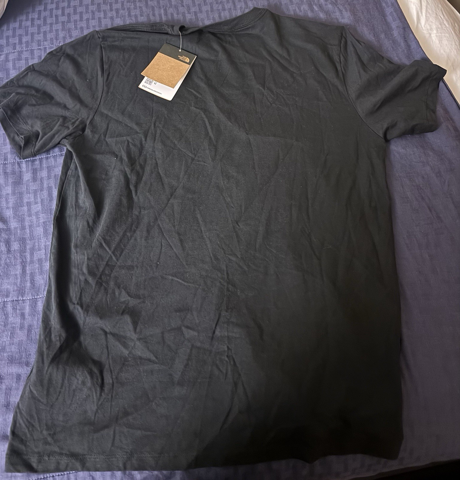 The North Face T-Shirt in black is a men's clothing item made from cotton with a crew neck and short sleeves. It features the iconic logo accents and is part of the regular fit collection. This classic tee is perfect for outdoor and sports-themed occasions, with a tagless design for added comfort. Made in El Salvador, this t-shirt is a versatile piece that can be worn throughout all seasons.