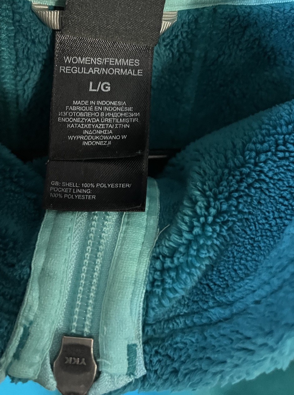 The North Face Teal Knit Fleece Full Zip Stand Collar Outdoor Jacket is a stylish and practical choice for women in size L. Made of polyester with a cozy fleece lining, this jacket features a full zip closure and a stand collar for added warmth in the winter, fall, and spring seasons. The teal color adds a pop of color to your outfit, while the logo accents on the zipper give it a touch of brand personality. Perfect for travel or casual occasions, this mid-length jacket with long sleeves is machine washable for easy care.