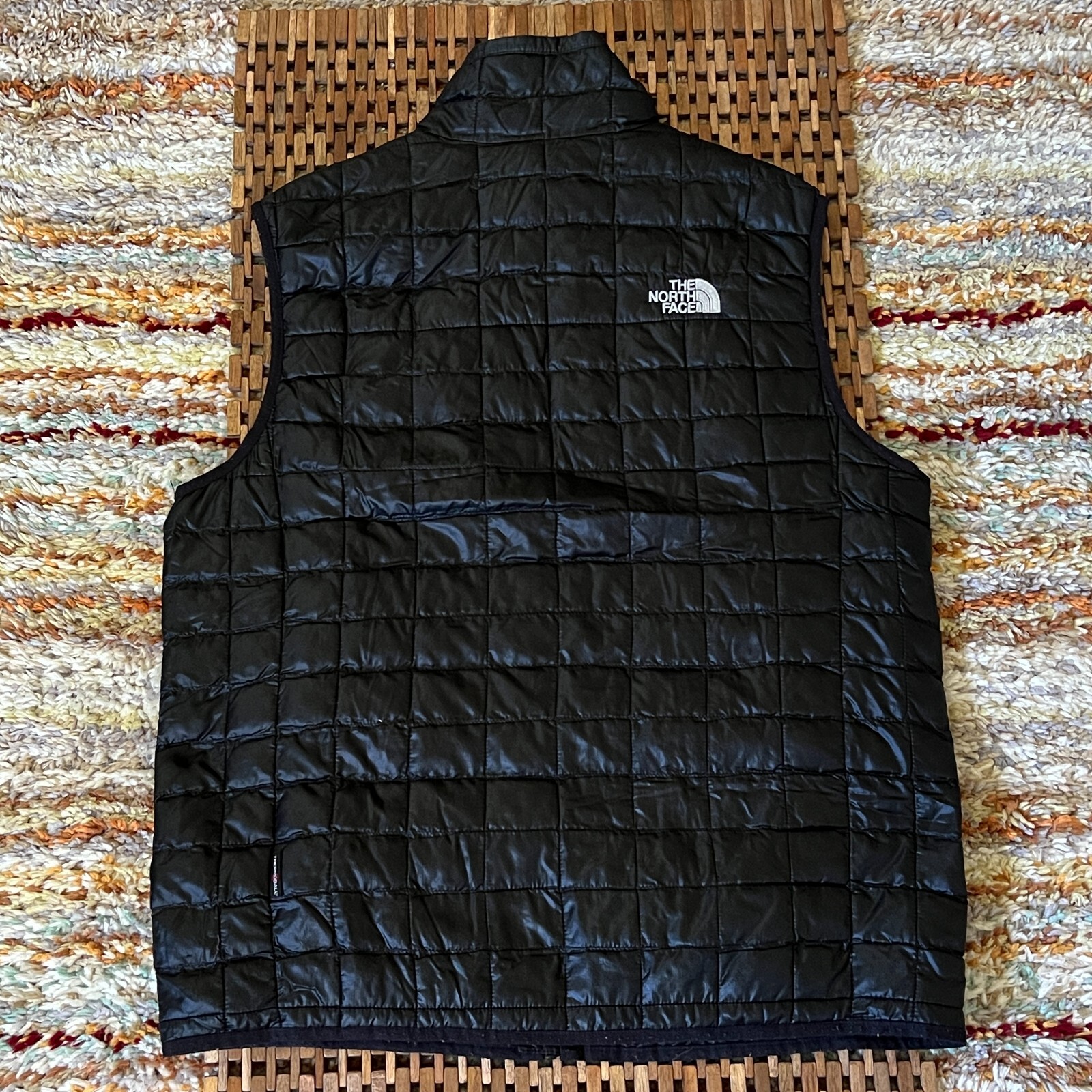 The North Face Thermoball Ultralight Puffer Vest in Black is a stylish and practical choice for outdoor activities like walking, skiing, or hiking. Made with durable nylon outer shell material and insulated with polyester, this vest provides warmth and comfort. The full zip closure and softshell fabric make it easy to layer and versatile for casual or travel occasions. With its medium size and regular fit, this vest is designed for men who enjoy being active in the great outdoors.