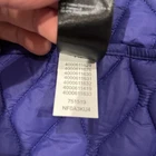 This North Face Thermoball vest for women is a great addition to your wardrobe. The vest features a stylish purple color and a polyester outer shell. It is a regular size XS and has a puffer style. The vest is perfect for keeping you warm and cozy, and is great for any outdoor activity.