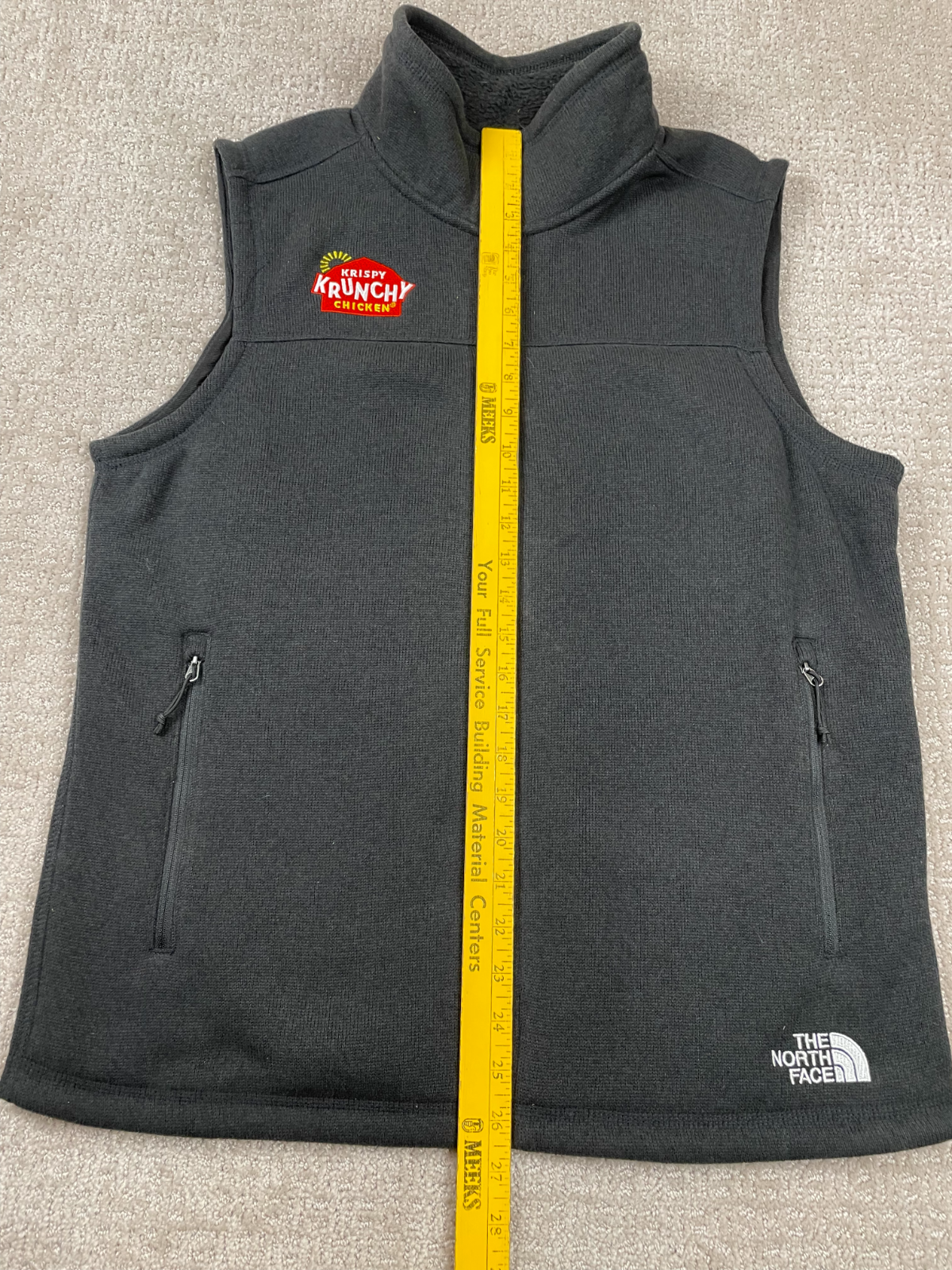 The North Face Vest for men in size medium is a stylish and practical choice for outdoor activities like hiking. Made of polyester fleece, this black vest features a full zip closure and a stand-up collar for added warmth and comfort. Perfect for casual occasions in winter, fall, and spring, this basic jacket is machine washable and easy to care for. With The North Face logo as accents, this vest combines fashion with functionality, making it an ideal addition to any outdoor enthusiast's wardrobe.
