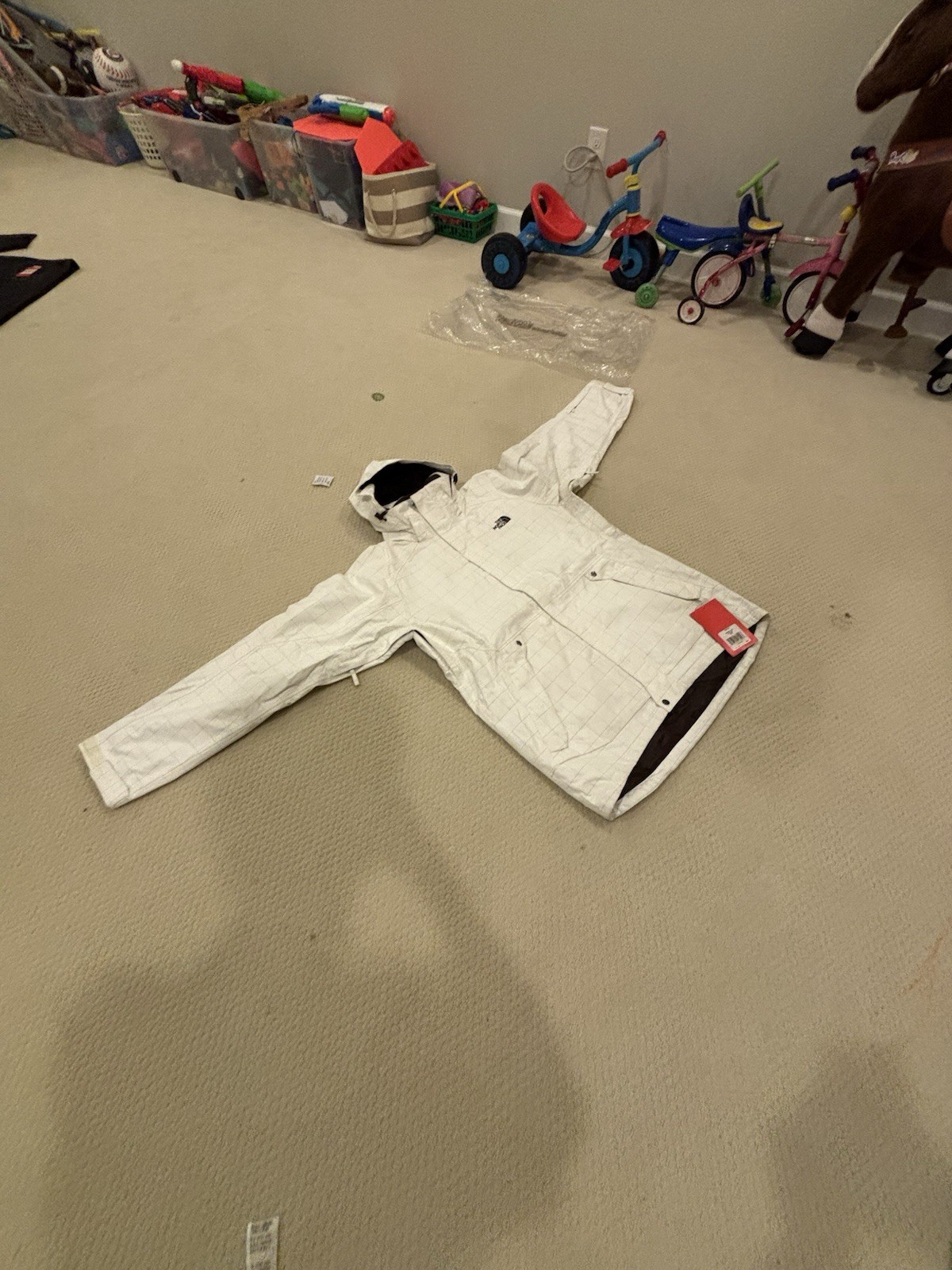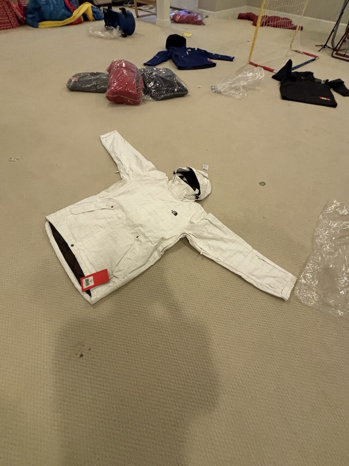 The North Face White Hooded Jacket is a stylish and practical outerwear option, perfect for casual occasions during the winter and fall seasons. Made with durable nylon outer shell material and cozy polyester lining, this jacket provides warmth and protection from the elements. With a hood for added coverage and a solid white color, this jacket from the trusted brand The North Face is a dependable choice for outdoor activities or everyday wear. Easy to care for with machine washable garment care, this jacket in size L offers a regular fit for both men and women.