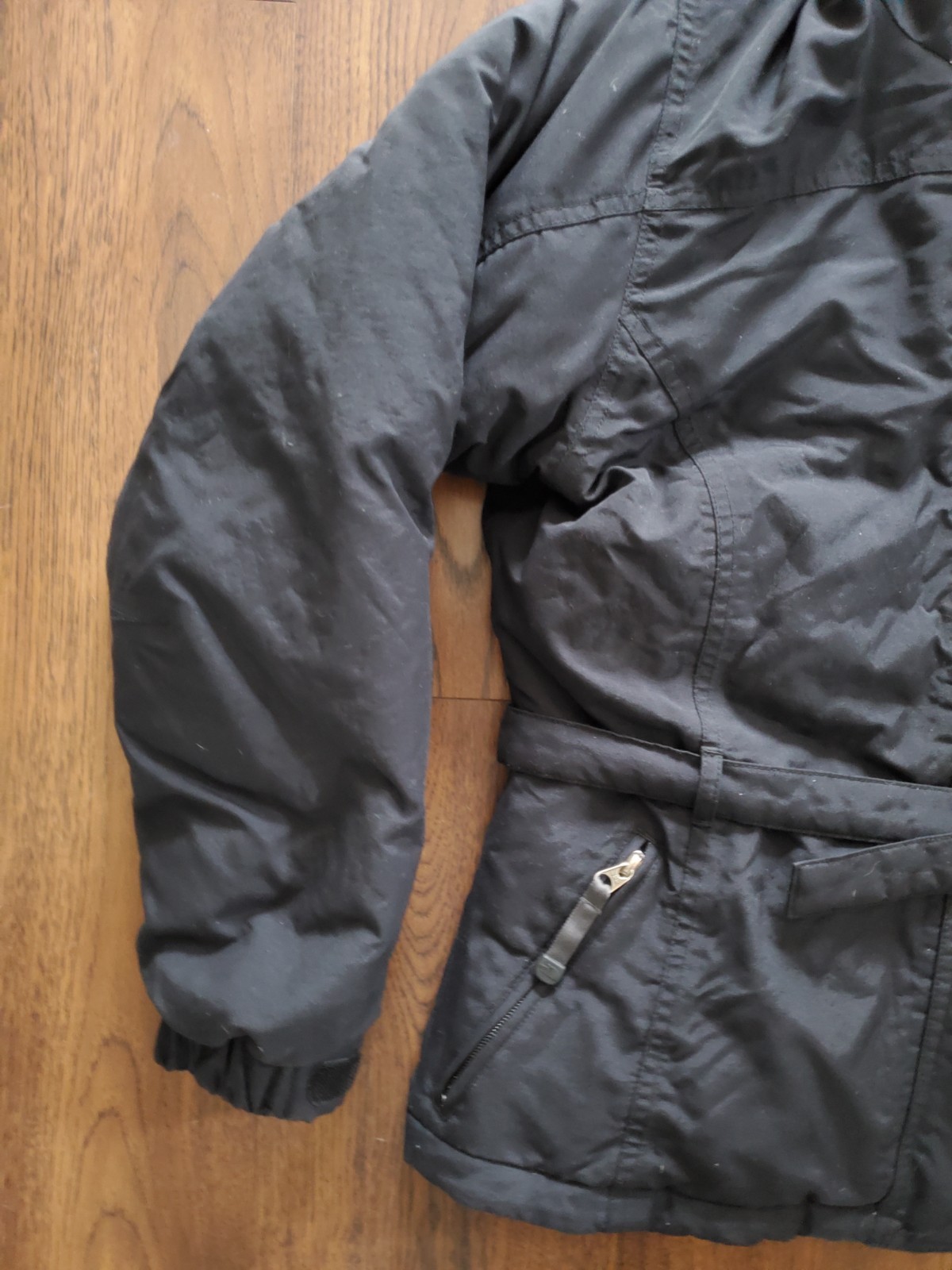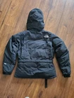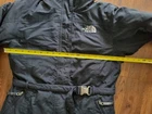 The North Face womans size medium down coat, front has a zipper & velcro, 2 pockets in front, 1 arm pocket, inside pocket, hooded with belt, belt is removable, see pics for approximate measurements as I do not accept returns, as pictured, no returns. Shipped USPS