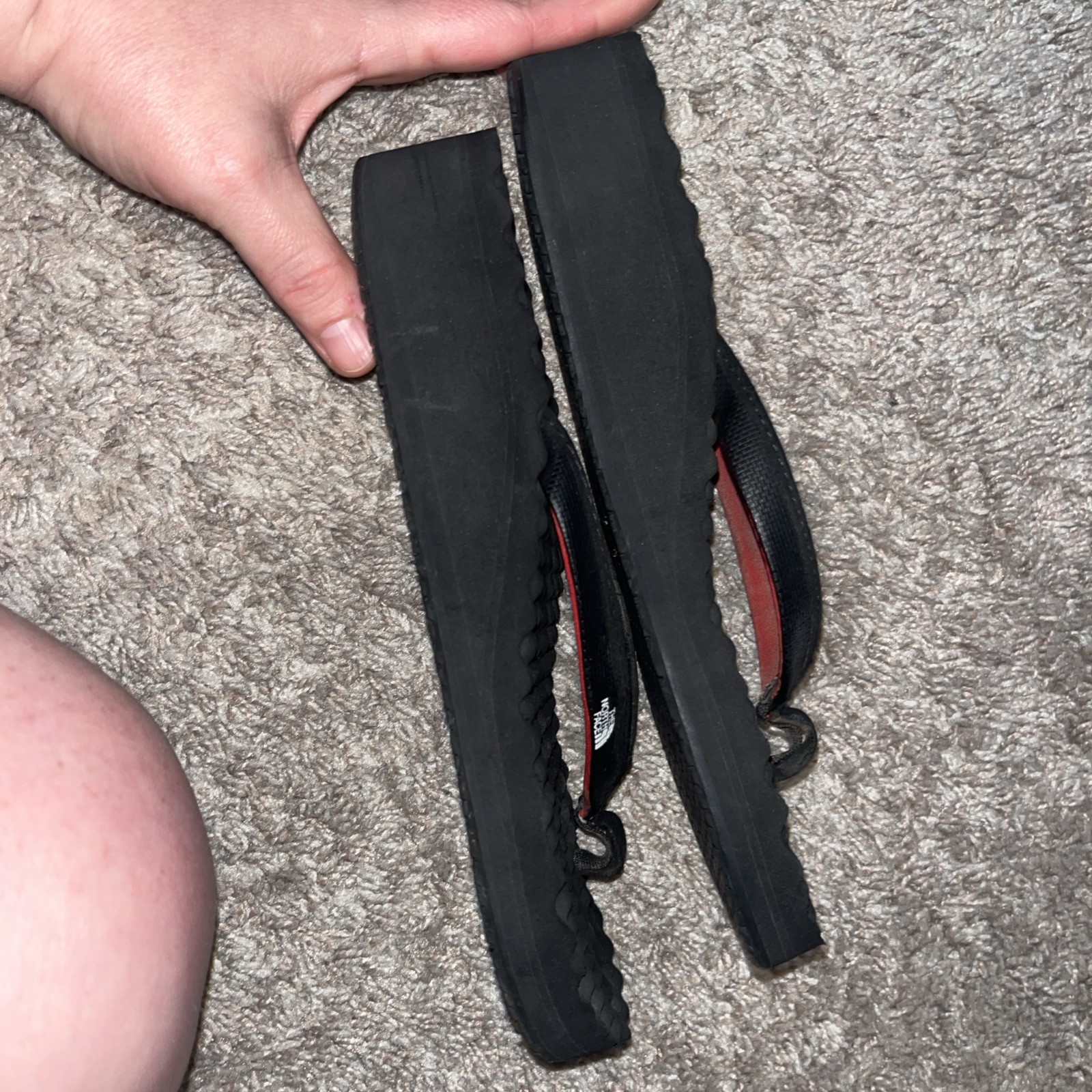 The North Face Women’s Base Camp Black Wedge Thong Sandals, Estimated Size 8.5. Condition is Pre-owned. Shipped with USPS Ground Advantage.