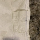 Elevate your style with these khaki cargo pants from The North Face. Featuring a solid pattern and a zip closure, these pants are made from soft cotton material with a mid-rise and flat front for a comfortable fit. The ivory color adds a touch of elegance to your outfit, while the cropped length and straight leg style keep you on-trend. These pants are perfect for any casual occasion and can be paired with your favorite top and shoes, making them a versatile addition to your wardrobe. With its quality fabric and brand reputation, these pants are sure to become a staple piece in your collection.