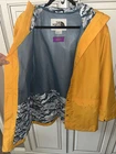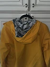 This yellow raincoat from The North Face is a must-have for any woman who wants to stay dry and stylish. The Liberty Woodmont model is made of high-quality polyester and features a waterproof design that will keep you protected from the elements. With a hooded jacket and a regular fit, you can enjoy a comfortable and practical outerwear option that doesn't sacrifice style. This jacket is perfect for any outdoor activity, from hiking to running errands in the rain. The North Face brand is known for its durable and high-quality products, and this jacket is no exception. The yellow color adds a bright and cheerful touch to any outfit, while the various features, such as the waterproof design and hooded jacket, make it a practical and functional choice. Snap is missing on the front left pocket as shown in picture does not take away from the beauty of the coat.