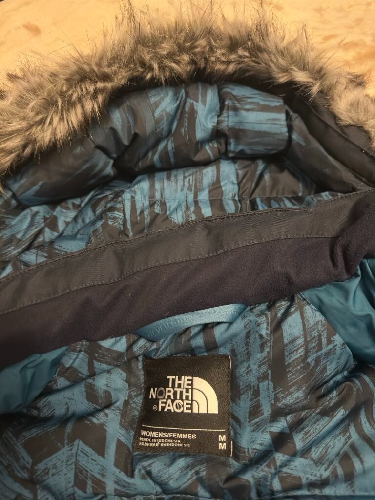 The North Face Parka Goose Down Winter Hooded Jacket Women's Navy Blue Size M. Jacket is in excellent condition with minimal signs of wear.