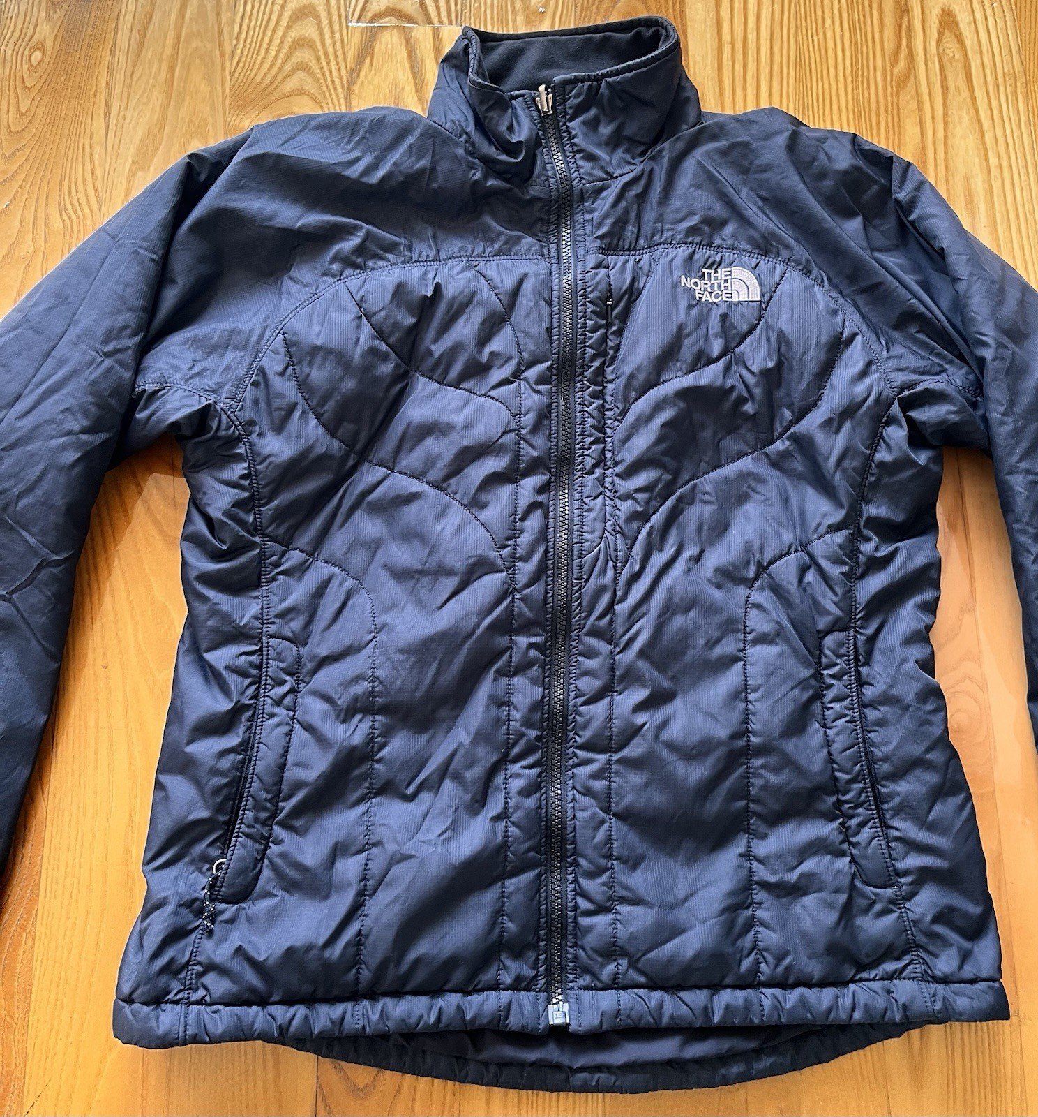 The North Face Women's Primaloft Insulated Puffer Jacket in Black, size M, is a stylish and functional outerwear option perfect for travel and casual occasions. Made with durable nylon outer shell material, cozy polyester lining, and insulated with polyester insulation, this mid-length jacket provides comfortable warmth during the winter, fall, and spring seasons. The jacket features a solid black color, zip closure, and a regular fit, making it a versatile piece for outdoor activities. Easy to care for with machine washable garment care instructions, this puffer jacket from The North Face is a reliable choice for cold weather.