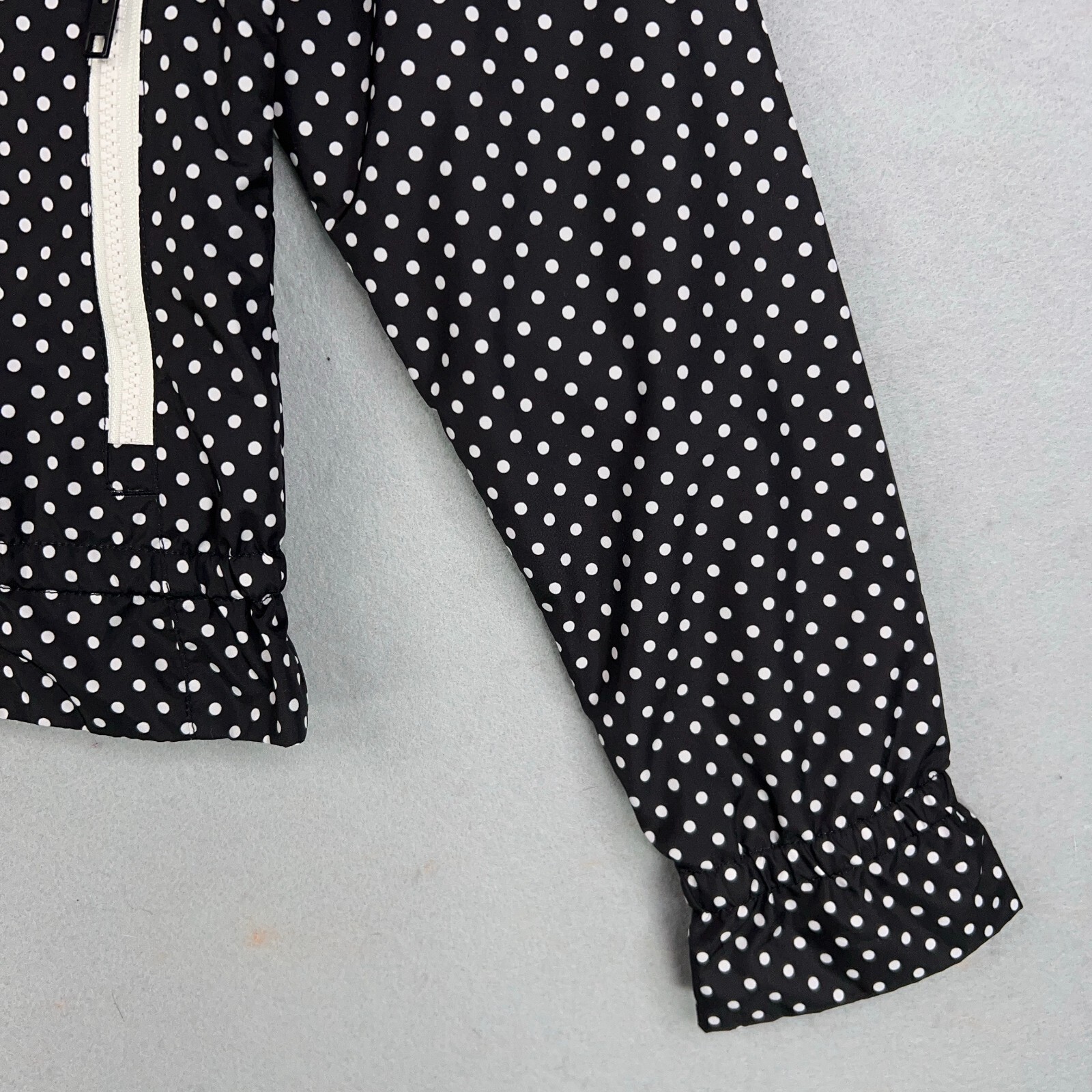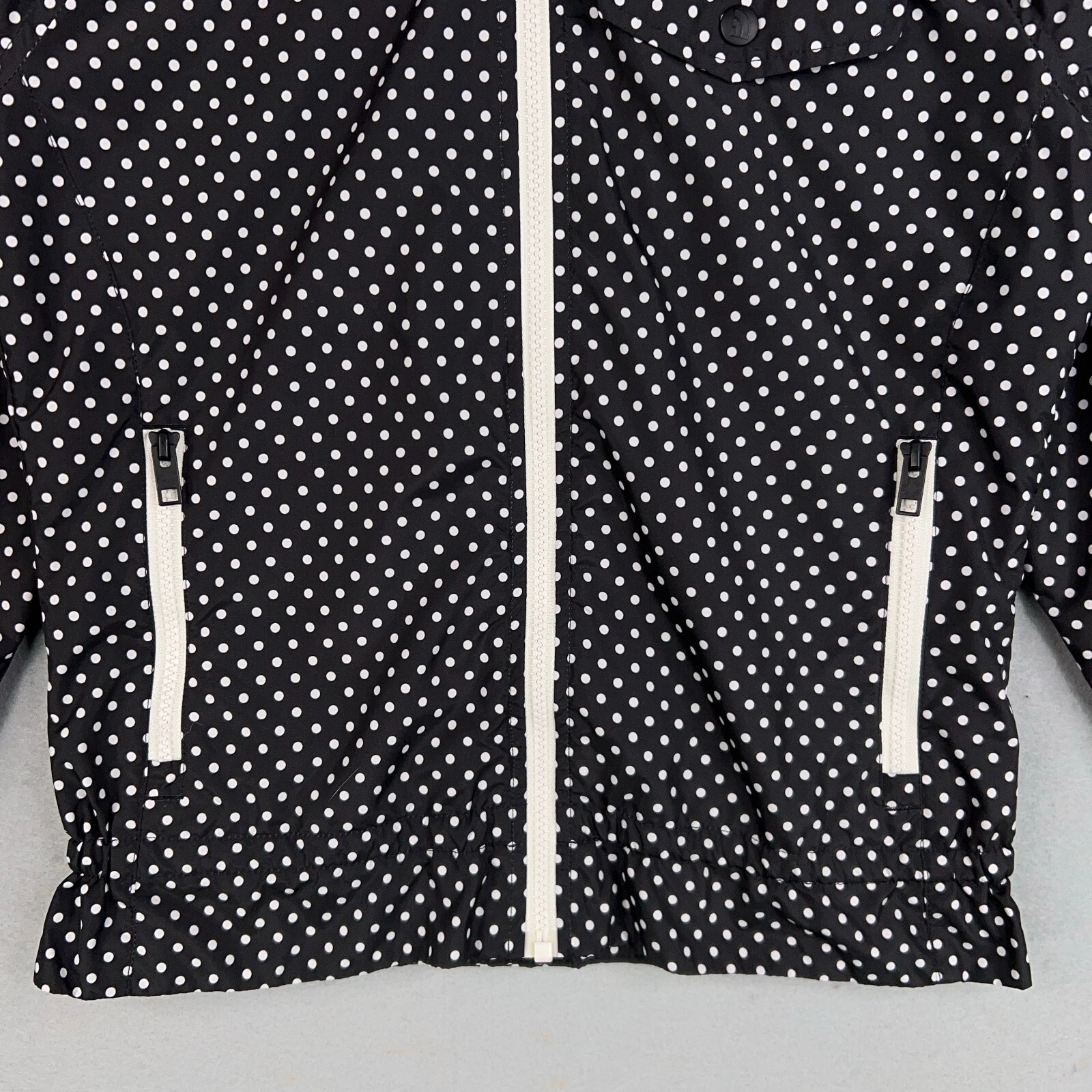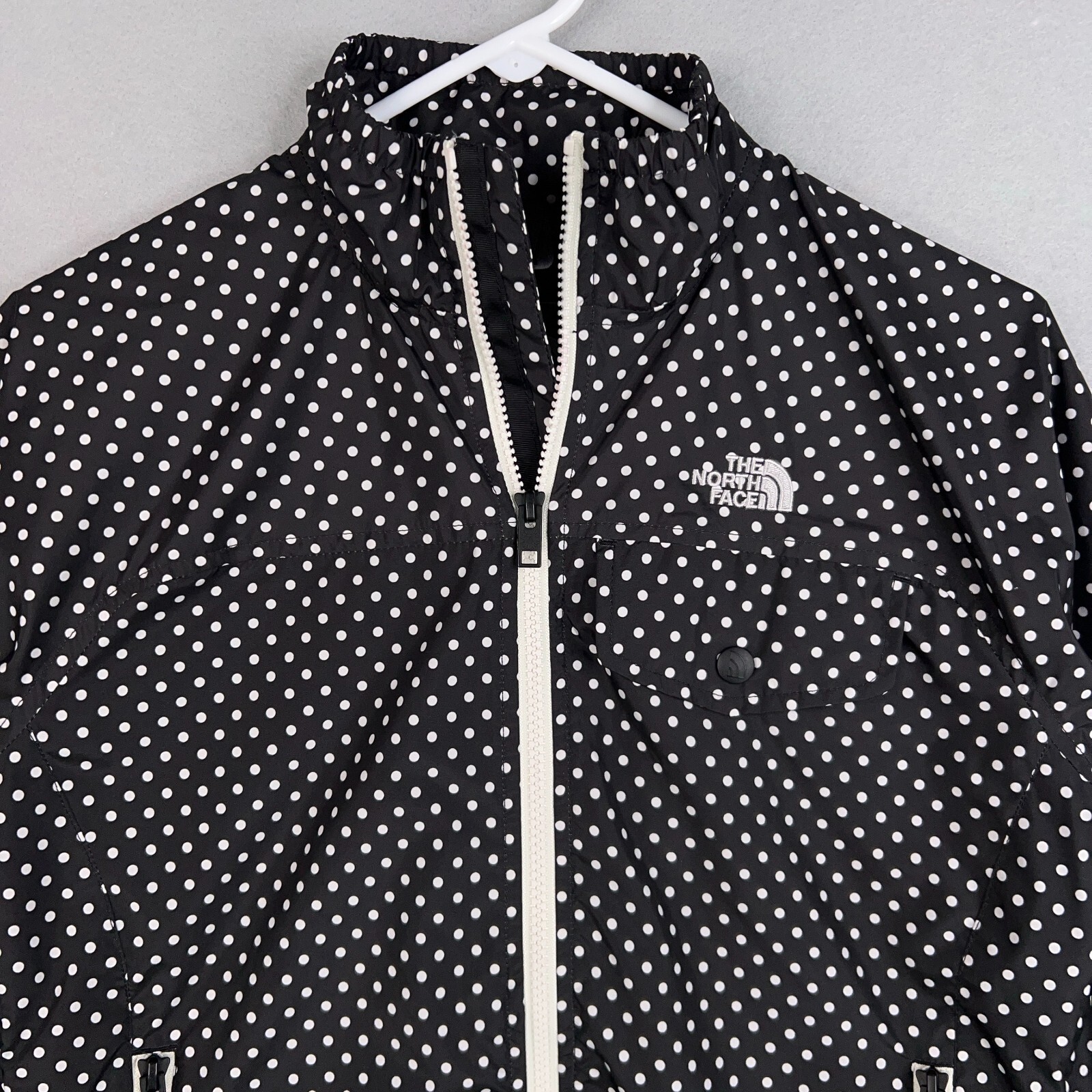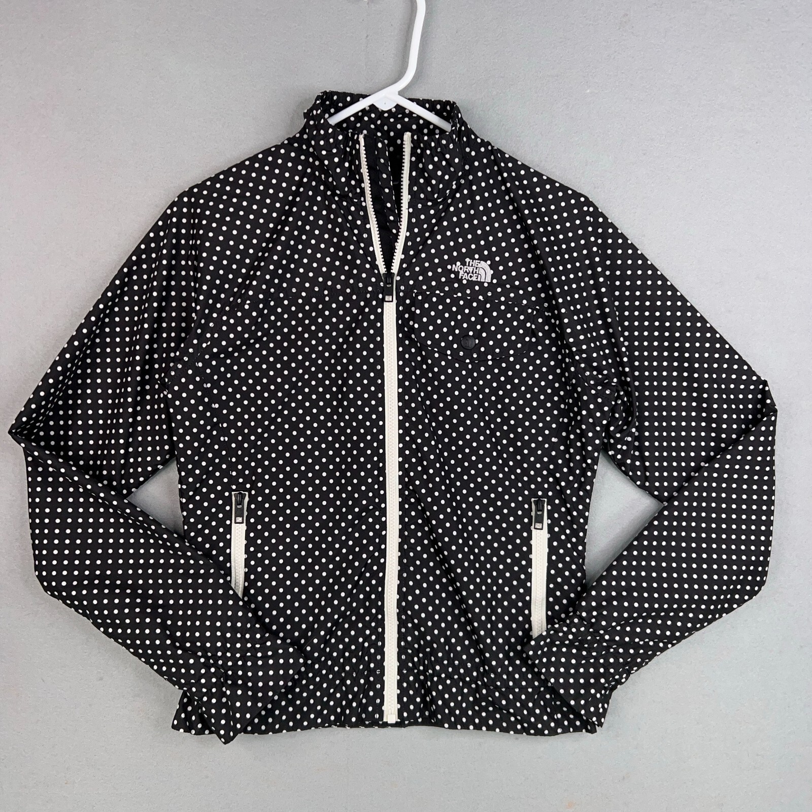 The North Face Jacket Womens Small Black White Polka Dot Windbreaker Ruffle Gorp Condition: - Overall in good used condition. - No rips, stains, or holes. Size: - Womens small. Measurements: - Previous washings may change the sizing written on the tag. - Please refer to the photos above for all measurements. - Please compare our measurements to that of one of your favorite garments. - Please note, item measurements are approximate . All items are bagged and sealed after being photographed, then stored in a smoke free environment to ensure the item is exactly the same as when photographed. I carefully package and ship daily. Feel free to contact me with any questions. All items have been washed per eBay standards & policies.