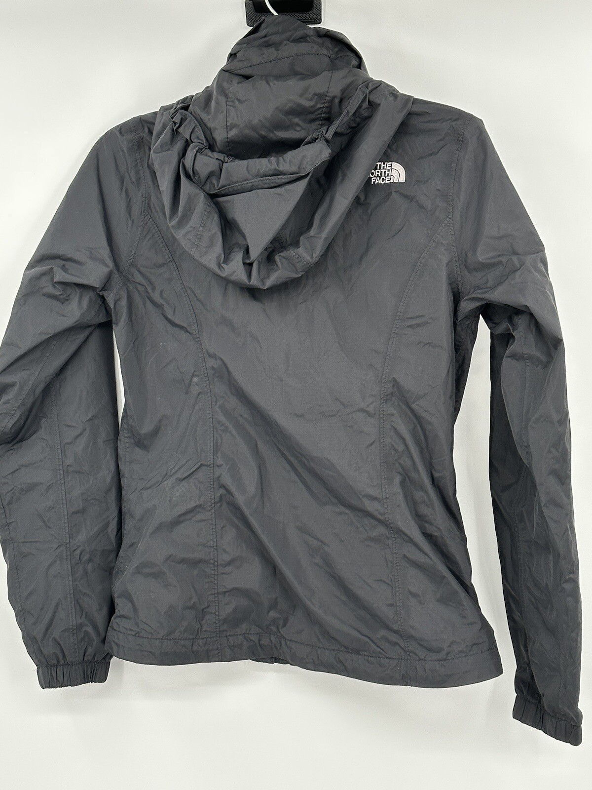 Stay protected from the elements on your next outdoor adventure with The North Face Jacket in size XS. This women's rain coat features a solid gray color with a nylon outer shell and polyester lining material. The long sleeve jacket has a zip closure and is made with canvas fabric type and polyester insulation material. Perfect for casual occasions, this jacket also features the brand's logo as an accent. Ideal for winter, fall, and spring seasons, it is suitable for hiking, trail walks, and other outdoor activities. Don't let the weather stop you from exploring with this stylish and functional rain coat.