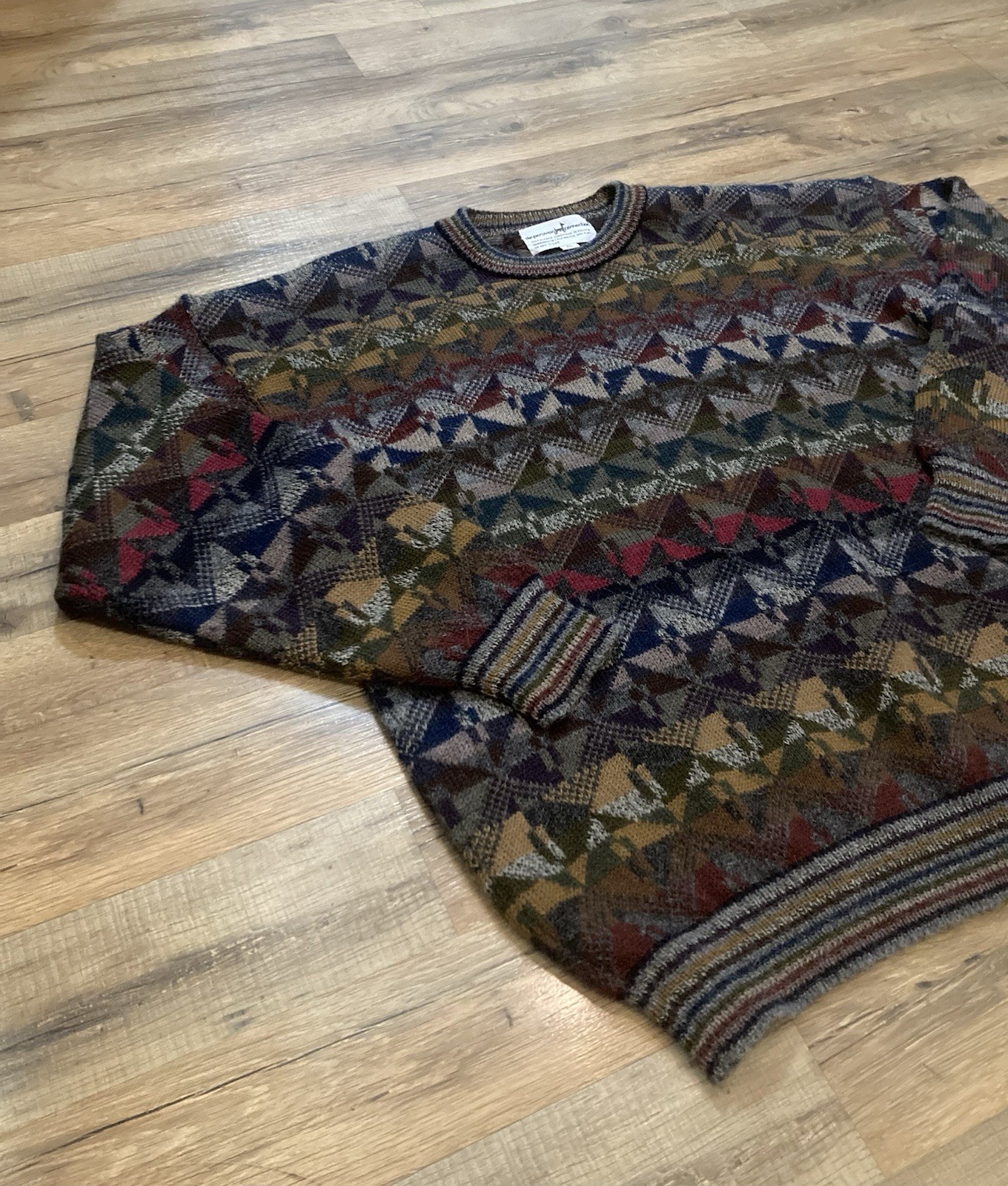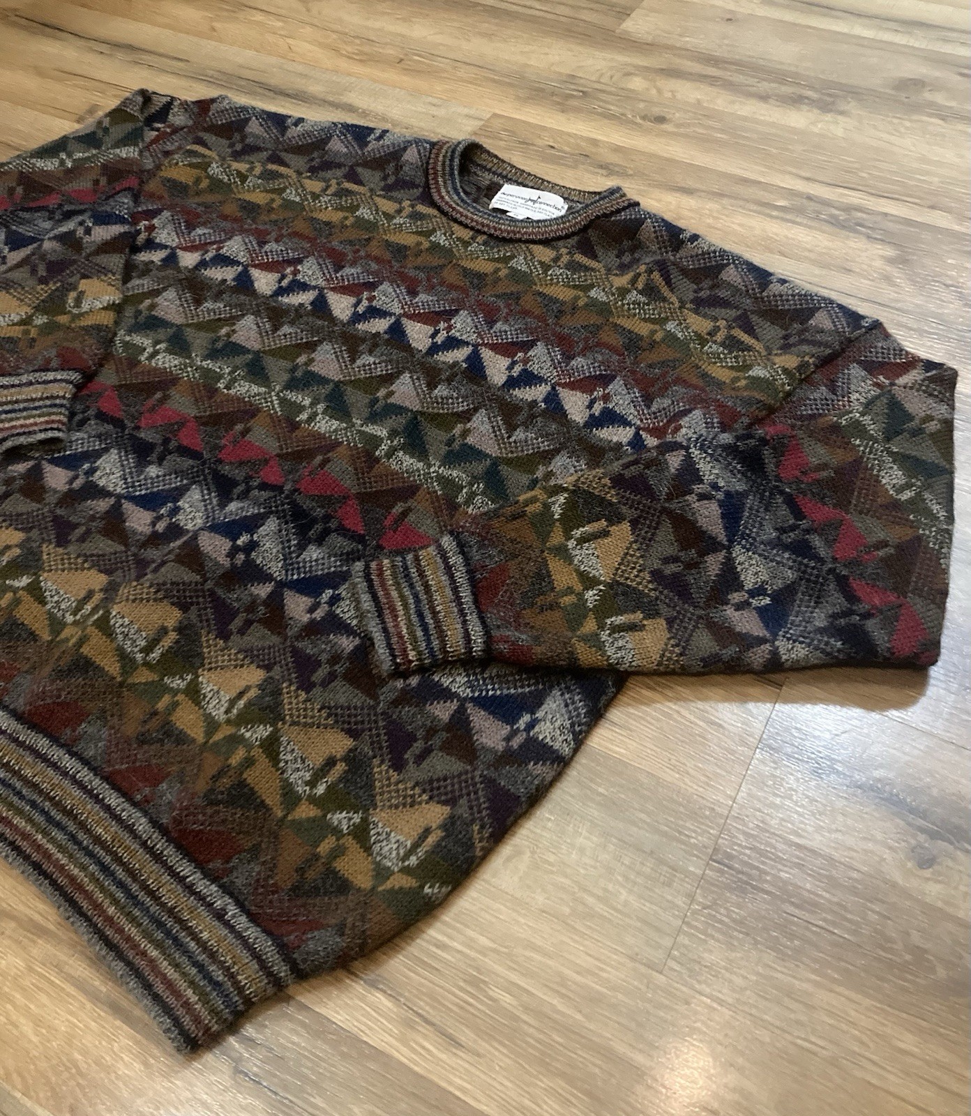 The Peruvian Connection Geometric 100% Alpaca Sweater in Multi-Color is a vibrant and stylish piece perfect for travel or casual occasions. The XL size and regular fit make it comfortable for both men and women. This vintage sweater features a crew neck and a colorful geometric pattern, making it a versatile option for all seasons. Hand wash only to preserve the quality of this unique garment from Bolivia.