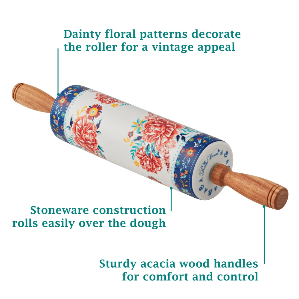 Pioneer Woman Ceramic rolling pin vintage floral pattern