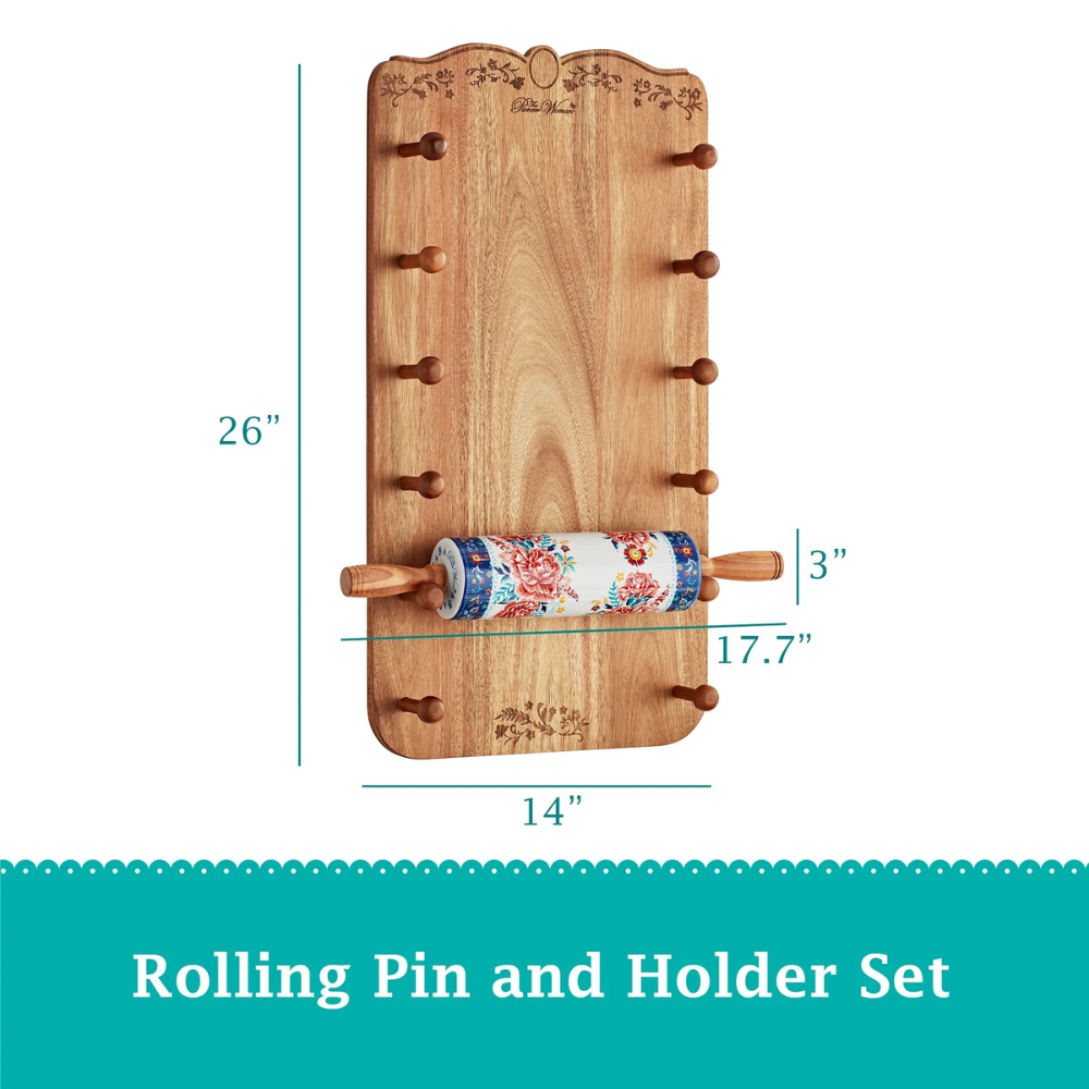 The Pioneer Woman 26-Inch Ceramic French Rolling Pin Dough Roller with Holder The Pioneer Woman Keepsake Floral 2-Piece Rolling Pin Set combines functionality with vibrant design, bringing a touch of rustic charm to your kitchen. The rolling pin features a unique floral pattern for a splash of color and character to your usual baking routine. It features sturdy acacia wood handles that offer a comfortable grip. The natural wood finish feels smooth in your hands, ensuring ease of use even when working with heavier doughs. They provide control and precision needed to achieve the desired thickness for pies, cookies or homemade pizza. The smooth surface of the rolling pin glides effortlessly over the dough, helping you roll it out evenly without sticking. This design ensures that your baking experience remains enjoyable and hassle-free. The set includes one stoneware rolling pin and one acacia wood rolling pin rack. When not in use, the rolling pin make for a beautiful decorative piece displayed on the acacia wood rack. Made from rustic acacia wood, the rack can have up to six (6) rolling pins. Raised knobs provide a safe space to hold each rolling pin securely. The built-in metal loop at the back mounts the rack on the wall for easy installation. When not in use, it spruces up any kitchen or prep space as it blends seamlessly with other The Pioneer Woman kitchenware. Ideal for both beginner bakers and seasoned pros, this rolling pin set provides durability and style. The set makes an excellent gift for anyone who enjoys baking, whether for everyday use or special occasions. The Pioneer Woman Keepsake Floral 2-Piece Rolling Pin Set caters to a variety of tasks, from rolling out thin crusts to handling larger doughs for pastries, pasta or bread. Meet Ree: Ree Drummond is an author, TV personality, social media phenom, and the woman behind the popular Pioneer Woman lifestyle blog that started it all. She’s also a lover of butter, basset hounds, Ethel Merman, her hunky, cowboy husband Ladd, and their four kids. Her casual country style and delicious recipes have made her a go-to for all things cooking and entertaining. The Pioneer Woman 26 in Ceramic French Rolling Pin 17-inch rolling pin designed for easy handling Made from durable stoneware material that rolls smoothly over dough Features a vibrant floral design complemented by acacia wood handles Includes a beautiful holder for stylish display of your rolling pin Coordinates with other kitchen essentials from The Pioneer Woman collection Shipping Policy FREE SHIPPING in all orders! Orders are usually processed and shipped out after 72 HOURS during BUSINESS DAYS (Monday to Friday) after payment has been received. But please be reminded that we are NOT processing and shipping orders during WEEKENDS and HOLIDAYS. Please make sure your ADDRESS is VALID for both UPS and USPS COURIER SERVICES. Please be reminded that costs incurred due to INCORRECT or UNDELIVERABLE ADDRESS should be shouldered by the buyer. The shipping services that we use are UPS, FedEx, USPS etc. We ONLY ship to the 48 STATES, NO APO/FPO ADDRESSES or PO BOXES. We DO NOT ship to warehouse, freight company. Local pickups and combined shipping options are NOT provided at this time. Return Policy DOMESTIC RETURN ACCEPTED - 30 DAYS. Contact us for more information. Payment Policy We accept payment by any of the following methods: PayPal Items can be returned for exchange or full refund WITHIN 30 DAYS from the date you receive your merchandise. We are not responsible for any purchase after this 30-day period. Feedback & Contact Us Customer satisfaction is very important to us. If you have any problem with your order, please contact us and we will do our best to make you satisfied. If you have any queries, please contact us via Ebay. We usually respond within 24 hours on weekdays. Thank you for shopping at our store.