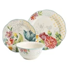 Product details The Pioneer Woman Blooming Bouquet 12-Piece Dinnerware Set is the perfect addition to your everyday dining table. Made from durable stoneware, this classic dish set is versatile enough for everyday use while maintaining an understated elegance for special occasions. Place settings for four include all the pieces you need to serve a wide range of cuisines and courses with dinner plates, dessert plates, and bowls. All featuring vibrant floral patterns and a subtly scalloped rim that adds color and life to any tablescape. Make your meals look cookbook-ready and elevate your serving with these versatile pieces. Dishwasher and microwave safe, this dinnerware set is easy to clean. Easy to pair with other items in the Pioneer Woman Collection, they also look great when stacked on your shelves or buffet display. The Pioneer Woman Blooming Bouquet 12-Piece Dinnerware Set serves up gorgeous colors with a classic styling that is sure to enhance your dining experience whether you're sharing meals with friends or by yourself. 4 - 10.75" dinner plates 4 - 8.5" salad plates 4 - 6.25" bowls Bring country charm to everyday dining with colorful patterns and subtle scalloped rim shape Made of durable stoneware Mix and match with other items in the Pioneer Woman Collection Decorated with Ree's signature floral designs Perfect for everyday use or elevated entertaining Dishwasher and microwave safe