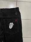 Name: The Rolling Stones Black Corduroy Pants Details: Black corduroy pants with embroidered "The Rolling Stones" logo on the back pocket Iconic tongue patch detail for a vintage rock aesthetic Slim-straight fit with a structured silhouette Side zipper pockets for added functionality Metal hardware accents for a bold look Measurements: Waist: 39 cm Inseam: 75 cm Front Rise: 26 cm Thigh: 27 cm Knee: 21 cm Leg Opening: 18 cm I recommend checking all photos and measurements before ordering.
