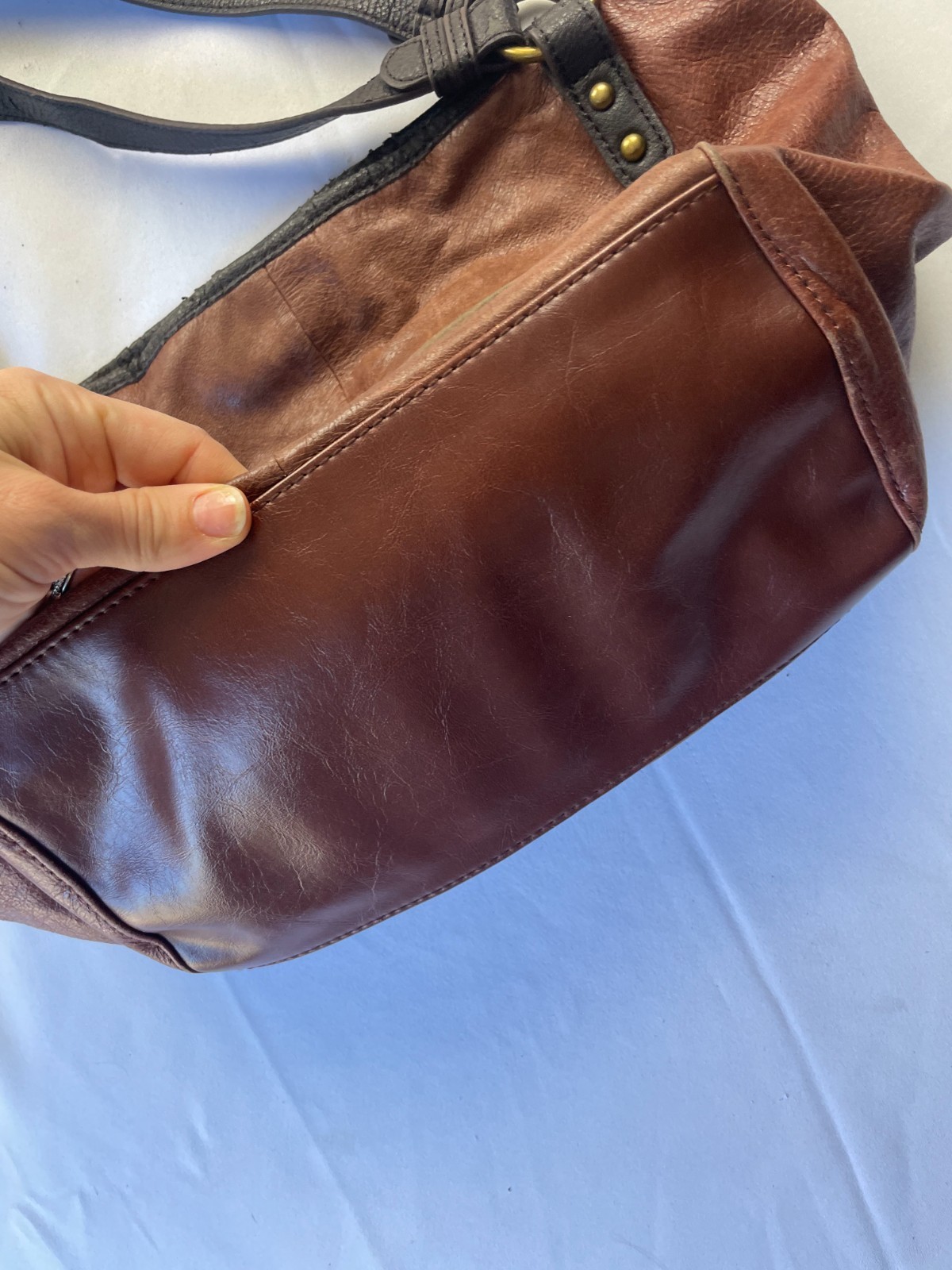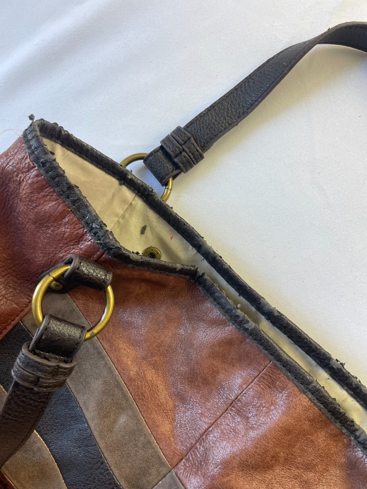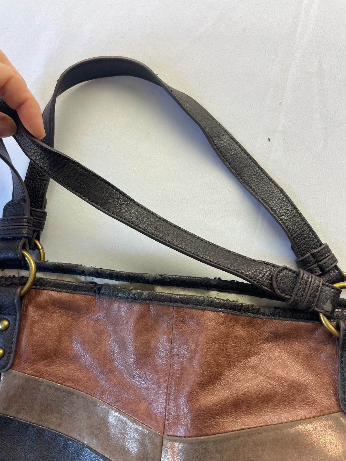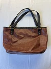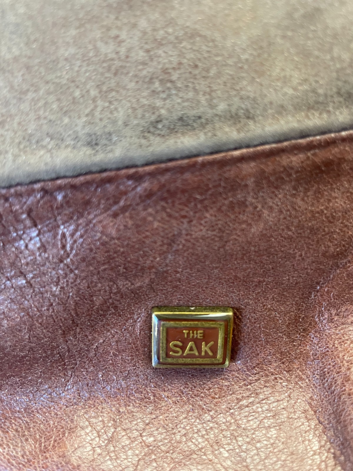 The Sak Brown Genuine Leather Tote Shoulder Bag Boho Chevron Faux Leather Trim Pre-owned, exact items on photos