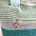 The Sak Limited Edition Tote from Since 1989 Collection Handmade in Bali in Stone Green Colorblock. Excellent used condition with no flaws. Hand crocheted in Bali on November 17, 2020 from recycled ocean crochet Top zip closure Interior zip pocket 2 interior slip pockets Exterior zipper pocket Dimensions: 14”L x 8”H x 6.5”D SKU 111124