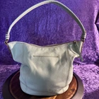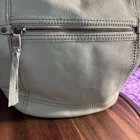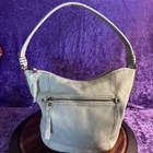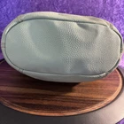 This medium-sized hobo bag by The Sak features a sea foam green pebbled leather exterior with silver hardware. It has a zip closure and a shoulder strap with a green handle. The bag includes front and back pockets for added storage and organization. The interior is lined with green polyester and has additional pockets. The overall style is casual and versatile, making it a practical and stylish choice for women on the go.