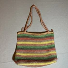 The Sak Large Woven Crochet Boho Hobo Shoulder Bag Tote Multicolor Stripe Purse. Outside zip pocket, inside zip and slip pockets. Very good vintage condition - minor spots on lining on interior - see photos Smoke free environment We try to ship same day or next day Feel free to message us with any questions