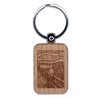 The Scream Art Painting Edvard Munch Engraved Wood Rectangle Keychain Tag Charm