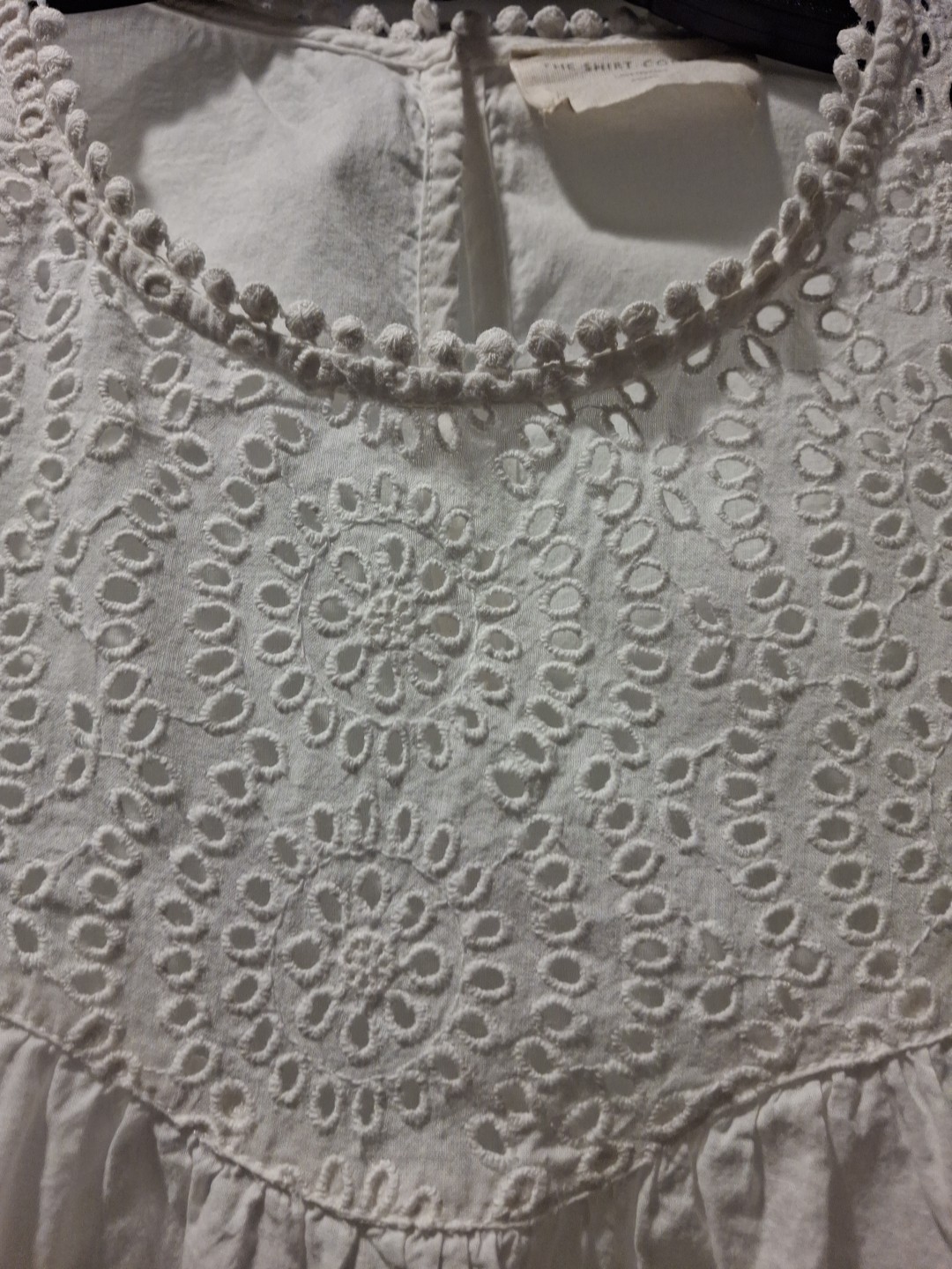 I found this The Shirt Company London Boho Women's Women's White Eyelet Cotton Top Size? at a local thrift store. Long Sleeves. No Size Tag. Armpit to Armpit is approximately 22 inches, Neck to Hem in back is approximately 23 inches. Perfect for your wardrobe! I source from stores, estate s ales, thrift stores, flea markets, yard sales, etc. Most Items are antique, vintage or second hand, unless otherwise noted. There will be wear and imperfections to some items. I am not an expert in the items I list, but describe them to the best of my ability. The photos are part of the description. Due to differences in monitors and lighting, colors may vary slightly from the photographs. Any display items in the photos are not included. Please ask any questions before bidding. I will gladly combine shipping, if the items qualify for the same rate. Please let me know if you would like to combine shipping before paying. Used clothing has been properly cleaned. I recycle boxes and packing material f or shipping, when possible . My home is non-smoking. Thanks for looking and Happy Bidding!