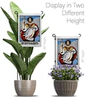 PROUDLY Made In USA - Package And Product Designed In California PURCHASE WITH CONFIDENCE - From 's US Authorized Resellers MADE OF DURABLE - 100% Thick Polyester Fabric construction helps resist the wear and tear from frequent use TEXT READABLE BOTH SIDES - Garden Flag Set Double-Sided Print DURABLE FLAG - Double stitching panels on multiple rows and high quality Sleeve to provide lasting strength VIBRANT COLORS - With UV-Resistant Maintains Its Colors All Season Long FEATURES - Free Breaks Down Metal Garden Flag Pole Included!