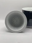 See pics. Small chip on the strainer part. Introducing the perfect addition to your tea time routine - The Tea Spot Tech Teaware Black White Ceramic 2 Piece Infuser Mug Cup. This tea strainer is designed to make your life easier and your tea taste better. The ceramic material ensures that it is durable and reusable, making it perfect for all occasions. The blue color adds a touch of elegance to your tea time decor. This tea infuser is perfect for those who love tea and want to enjoy it in style. The two-piece design allows you to infuse your tea leaves without any hassle. The Tech Teaware model is designed to make your tea time experience even more enjoyable. Made in China, this tea strainer is a must-have for all tea lovers out there.