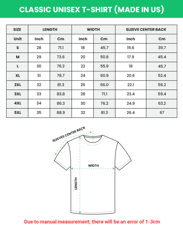 Free eBay listing template designed by dewiso.com PRODUCT DESCRIPTIONS 100% Satisfaction Guaranteed - Shop With Complete Confidence Before placing your order, please review the complete product description carefully. Your satisfaction is our highest priority and we want to ensure you make an informed purchase decision. FEATURES AND FURTHER DETAILS Classic Unisex T-Shirt Gildan 5000 (Made In US) Elevate your wardrobe with our premium custom-printed t-shirt, featuring exceptional quality and versatile design. Each shirt combines classic styling with modern comfort, perfect for everyday wear and special occasions. Key Features: • Premium 5.3 oz/yd² weight cotton blend • Durable double-needle stitching on sleeves • Reinforced taped neck and shoulders • Classic crew neckline • Comfortable unisex fit • Professional DTG (Direct to Garment) printing. Material Composition: • Standard Colors: 100% cotton • Dark/Heather Variations: 50% cotton, 50% polyester • Sport Grey & Antique Colors: 90% cotton, 10% polyester • Ash: 99% cotton, 1% polyester. Available Sizes : S, M, L, XL, 2XL, 3XL, 4XL, 5XL. Color Selection: Ash, Black, Charcoal, Dark Chocolate, Dark Heather, Forest Green, Gold, Ice Grey, Irish Green, Kiwi, Light Blue, Light Pink, Maroon, Military Green, Navy, Orange, Purple, Red, Royal, Sand, Sport Grey, Tropical Blue, Turf Green, White, Antique Irish Green, Antique Orange, Antique Sapphire, Azalea, Cardinal Red, Carolina Blue, Cobalt, Coral Silk, Cornsilk, Daisy, Graphite Heather, Heather Navy, Heather Red, Heliconia, Lime, Natural, Sapphire, Tweed. Base Product: Gildan 5000 Perfect for: Men and women seeking quality, comfort, and style. Note: Colors may slightly vary due to screen settings. CONTACT US 24/7 Customer Support - Fast & Reliable Service Have a question or concern? We're here to help! Feel free to reach out through eBay messages anytime, and we'll respond within 24 hours. Your satisfaction is our priority, so please don't hesitate to contact us before, during, or after your purchase. We want to ensure you're completely happy with your shopping experience. Payment We accept all eBay-approved payment methods. Shipping • US Orders: 5-10 business days. *Please allow 2-5 business days for order processing. *Ship from USA Warehouse. Contact Your satisfaction is our top priority! Before leaving any negative feedback, please reach out to us first - we're committed to resolving any concerns you may have. We take pride in our 100% customer satisfaction policy and will work diligently to ensure you're completely happy with your experience. Your feedback helps us serve you better! THANK YOU FOR YOUR PURCHASING OUR PRODUCTS.