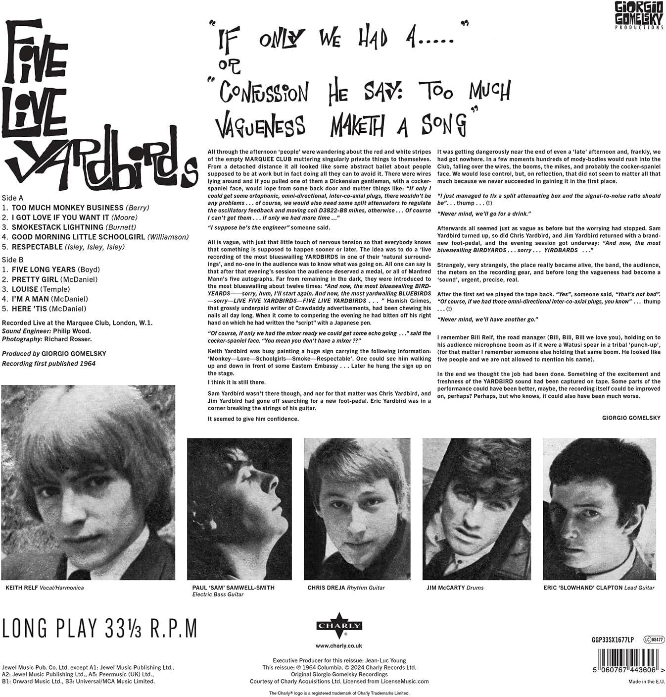 Further Details Title: Five Live Yardbirds Condition: New Record Label: Charly Records Artist: The Yardbirds Format: Vinyl Edition: 12" Album No Of Discs: 1 Release Date: 11/22/2024 Genre: Rock Style: Rock EAN: 5060767443606 MPN: GGP33SX1677 Release Year: 2024 Tracks: 1: Too Much Monkey Business 2: I Got Love If You Want It 3: Smokestack Lightning 4: Good Morning Little Schoolgirl 5: Respectable 6: Five Long Years 7: Pretty Girl 8: Louise 9: I'm a Man 10: Here 'Tis Missing Information? Please contact us if any details are missing and where possible we will add the information to our listing.