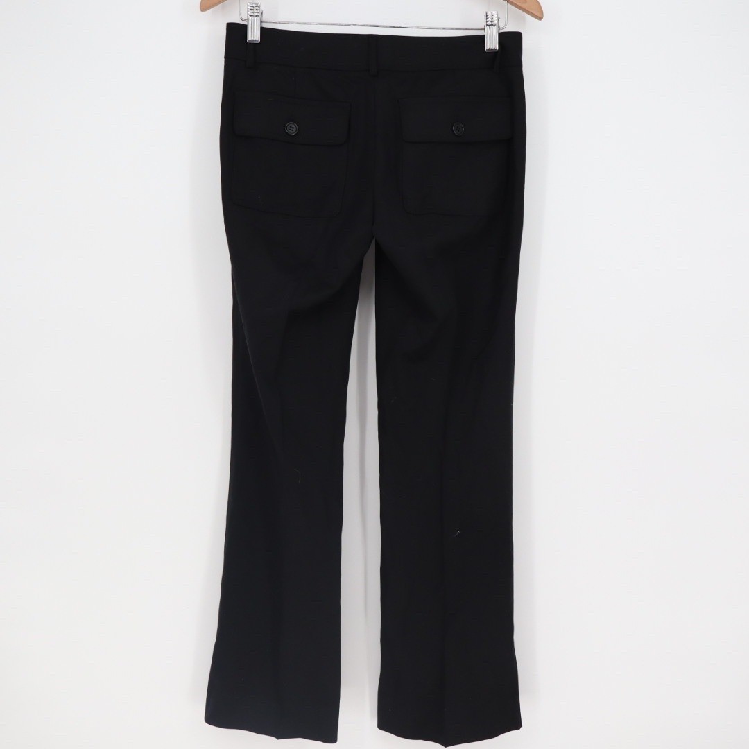 Theory black wool blend flare dress pants trousers. These sophisticated pants feature a classic five-pocket design with button closures on the back pockets. The tailored fit and subtle flare create a flattering silhouette, perfect for business meetings or elegant evenings out. Measurements: • Waist: 15 in • Length: 37 in • Inseam: 28 in • Size: 2 Style: Dress Pants Department: Women Material: Wool, Lyrca Leg Style: Flared Type: Pants Fabric Type: Wool Features: Pockets, Stretch, Wrinkle Resistant Closure: Zip, Button Pattern: Solid Accents: Button Occasion: Workwear, Business Inseam: 28 in Waist Size: 30 in Fit: Regular Rise: Mid (8.5-10.5 in) Keywords: Theory pants, wool blend, flare trousers, dress pants, career wear, business casual, tailored fit, classic style, workwear, office attire, elegant, sophisticated, black trousers All orders are shipped the same business day or the next business day. Thank you for supporting my small business.