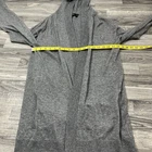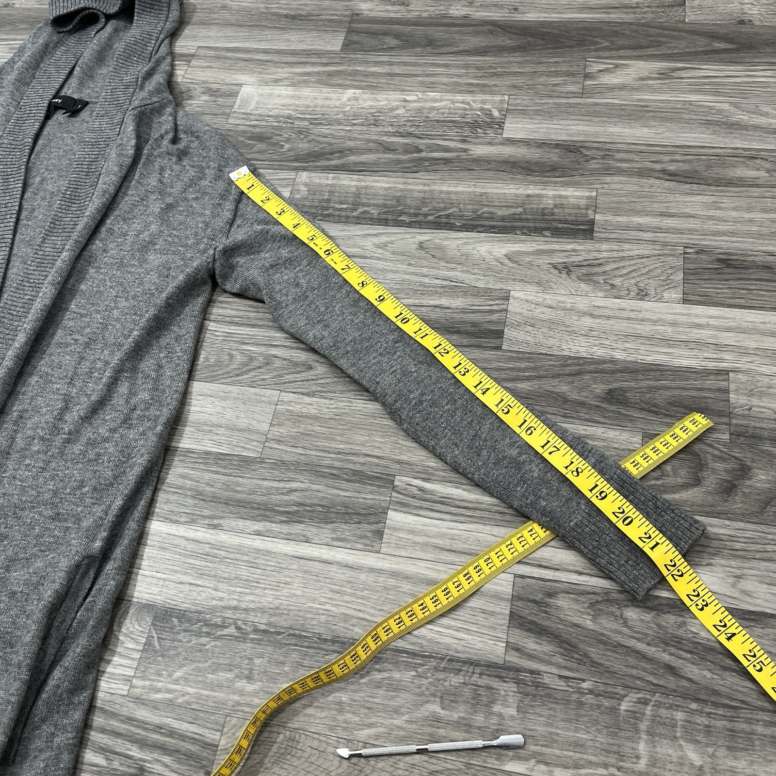 This Theory Cashmere Open Front Cardigan Sweater in Charcoal Gray is a luxurious and cozy addition to any woman's wardrobe. Made from 100% cashmere, this knit sweater features a shawl collar and long sleeves, perfect for keeping you warm and stylish. The open front design adds a touch of versatility, making it easy to layer over any outfit. With its comfort fit and high-quality fabric, this cardigan is sure to become a staple piece for any woman looking for both style and practicality in her clothing choices.
