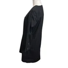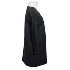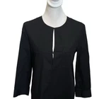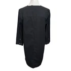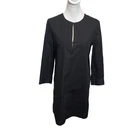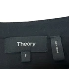 Theory Jullitah B Split Front Poplin Tunic Dress Mini Black Shift Womens Size 8 Theory "Jullitah B" tunic dress in crisp poplin with double needle topstitching. Split neckline; hook closure. Bracelet sleeves; button cuffs. Patch pockets at chest and side. Shift silhouette. Mini length. Cotton/spandex. imported of Italian materials. Approximate Measurements taken flat:pit to pit 20 , length 35 Pre-owned; in excellent condition. No rips, stains or holes. Please see all photos for condition details.