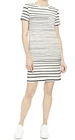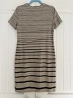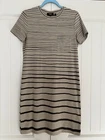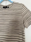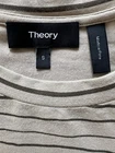 Theory Women’s Striped T-Shirt Dress size S.Great condition. Striped t-shirt dress with abstract stripes of graduated size. One front chest pocket Short sleeve, color is cream ecru .Printed fabric 44% pima cotton, 44% modal, 12% spandex Fabric has some nice stretch.