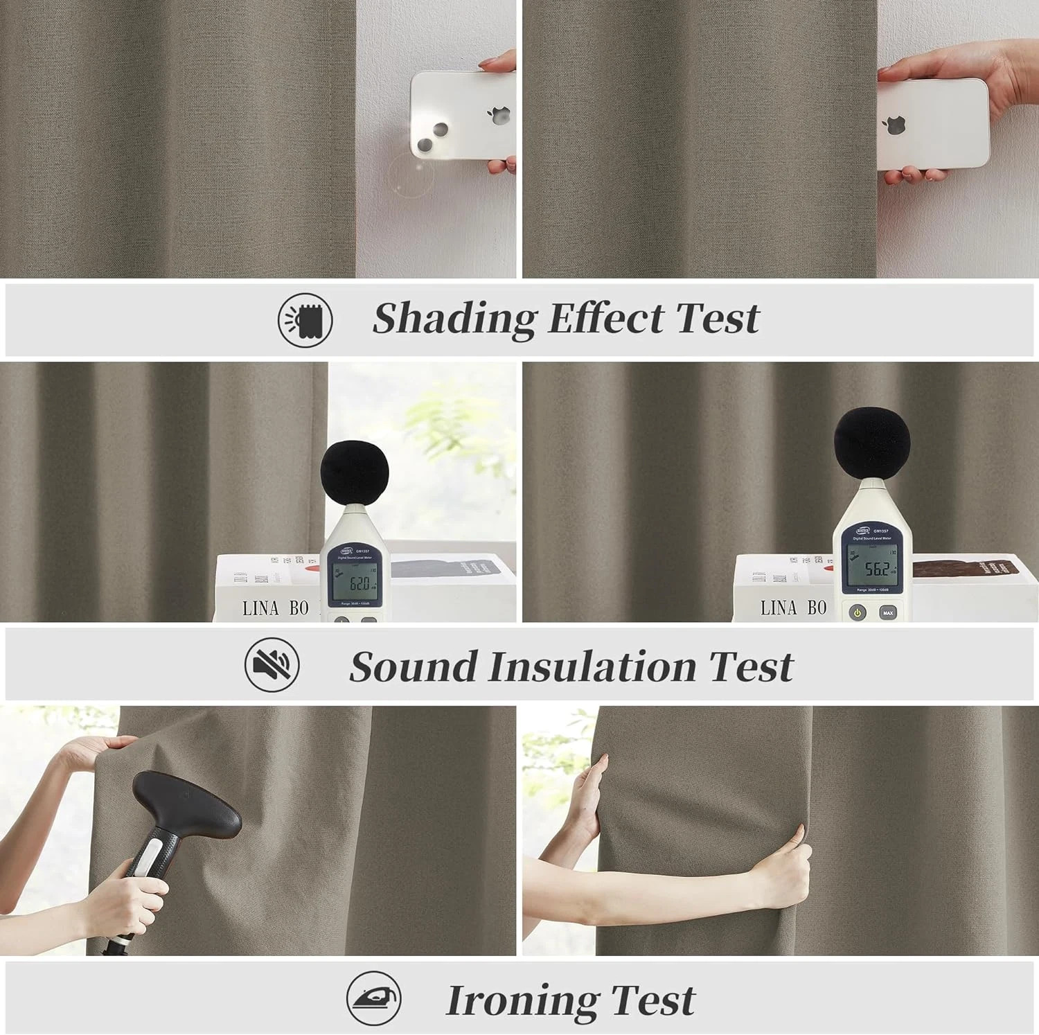 100% Money Back Guarantee if you are not satisfied with your purchase! ___________________ Description: 80% Polyester, 20% Linen 100% Blackout Linen Curtains: Our blackout linen curtains to impede 100% unwanted light and UV rays. These blackout panels are made of thick, opaque materials that completely block out external light sources, providing complete darkness and privacy in a room. 4-Way Hanging Options: (1) Using the back loops to create an elegant pleated effect. (2)A classic rod pocket style, simply hang your curtains by passing the 3.3-inch rod pocket. (3) Using your own clip ring (4) Using small hooks on the hook belt and pinning on your own rings.(Rings and hooks are not included) Energy Smart: Our Vertical drapes provide thermal insulation and energy-saving benefits, reducing indoor temperature and minimizing noise and light interference for a more comfortable environment. They also help regulate temperature year-round, keeping rooms warm in winter and cool in summer. Good Choice: 2 panels per package. Each curtain panel measures 50" wide x 126" long (Total width is 100"). These curtains are ideal for creating complete darkness in bedroom, living room, nursery, laundry room, patio, and home theater. The textured fabric adds a natural farmhouse, country, or rustic style to any room, creating a cozy and warm atmosphere. Easy Care: Hand wash is recommended for these curtain panels under 86F. Machine washable in cold water, use only non-chlorine bleach when needed, tumble dry low and cool iron on face side as needed. Quick ironing or steam clean as needed. ________________________ 100% Money Back Guarantee: We offer 30 Day Money Back Guarantee from the day you purchased if you’re not satisfied with your product. If you have any questions about our products, please contact us as soon as possible. Customer satisfaction is our absolute priority. Shipping: We are always working hard to ensure your package arrives as soon as possible. Please understand that some factors like weather, high postal traffic, and the performance of shipping companies are outside of our control. We offer free shipping to the lower 48 states and ship within 3 business days of payment, usually sooner. We do not accept P.O. Boxes. Please provide a physical address. You will be notified via eBay messages as soon as your items ship. Delivery: We will ship out the item in 2-3 working day after receiving the payment. Usually the delivery takes 2-5 business days. If you don't receive the items after 10 days, please feel free to contact us. You will get a replacement or a full refund. Please DO NOT open a return request or leave negative feedback without asking for help . Returns (Get Free Return Label): We offer a 30-Day Return Policy on defective/wrong items or items which you are not completely satisfied with. You have the option for a full-refund or an exchange of the item. No need to buy eBay return label. Contact us via eBay messages and get free return label. Returned items must be in all of the original packaging and include all of the original accessories or items that came with it. The item and package should be in original condition. Contact Us: Any queries or issues incurred, please feel free to contact us via eBay message, we will get back to you within 24 hours. Please DO NOT open a return request or leave negative feedback without asking for help. Feedback: Your feedback is very important to us. After you get your package and you are satisfied with our service, please leave us positive feedback. We are highly appreciated for your POSITIVE feedback and 5 stars. Enjoy shopping.